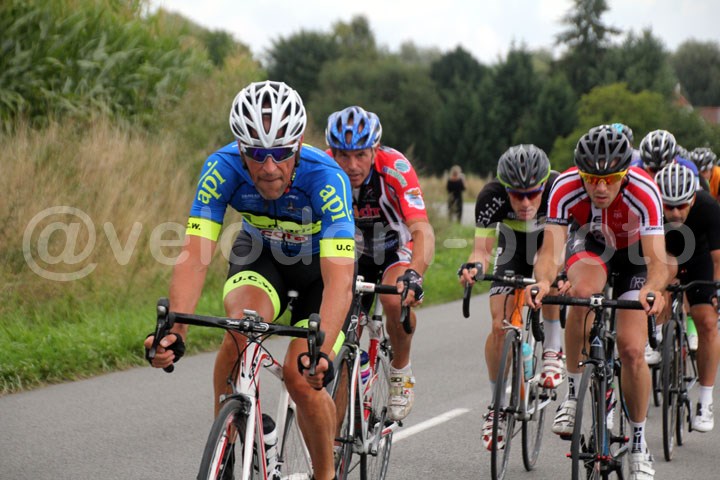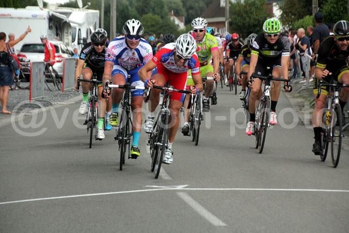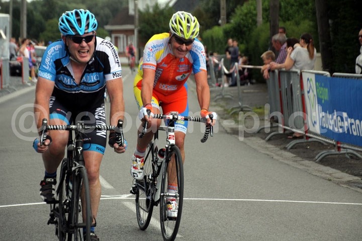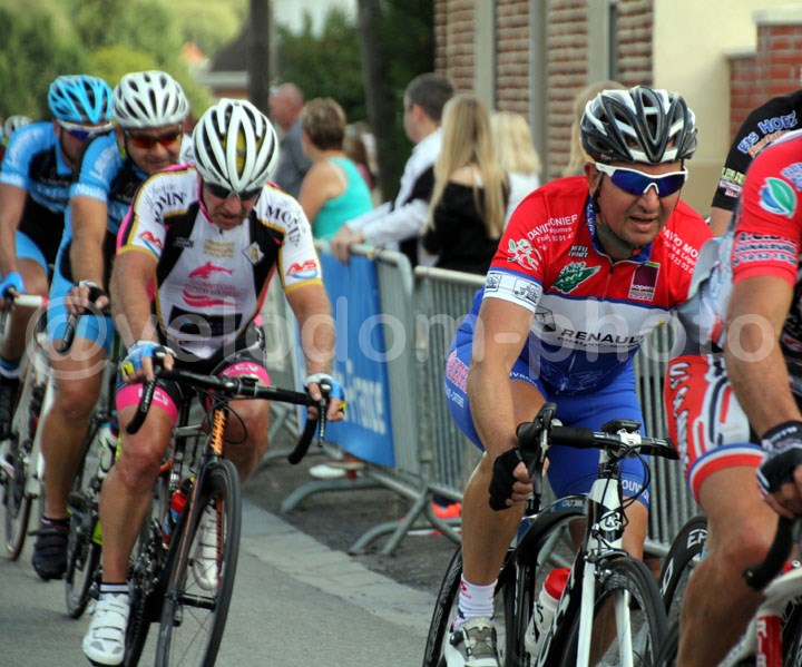 Très vite, les grandes hostilités vont s’engager en 4ème cat avec une échappée qui va prendre forme avec Patrick Valcke ( Team JPP ), Alain Dupuis ( Team JPP ), André Gabez ( New Team Maulde ) et Laurent Taquet ( New Tem Maulde ). A l’arrière, c’est Daniel Deneque (Bermerain ) qui faisait le forcing en tête de peloton. Dans le  3ème tour et après un bel effort, Philippe Ossart ( Bruquehaut ) et Christian Leblond ( Isbergues ) vont rentrer sur la tête de course. En vue du final, Christian Leblond tentera bien une échappée mais sans succès et c’est toujours groupé que les hommes de tête s’élanceront dans les derniers kilomètres de course avec un gros travail de Patrick Valcke mais aussi ceux de la New Team Maulde. Dans le dernier tour, Patrick Valcke ( Team Jpp ) réussira à fausser compagnie à ses compagnons d’échappée pour s’attribuer une belle victoire devant Laurent Taquet ( New Team Maulde ) et Christian Leblond ( Isbergues ). Superbe course de nos amis de Maulde qui feront 2 et  4.