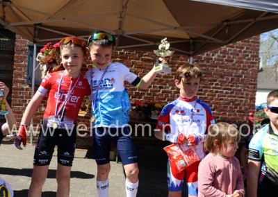 Ce sont 11 poussins qui engagèrent les hostilités sur un tour de circuit de 2 Km 900 mais sans le secteur pavé. Au terme d’une belle lutte au sommet, c’est Vadim Laboudie ( VC Halluin ) qui sortira grand vainqueur de cette épreuve devant Julian Tison et Martin Scott ( CC Orchies ).