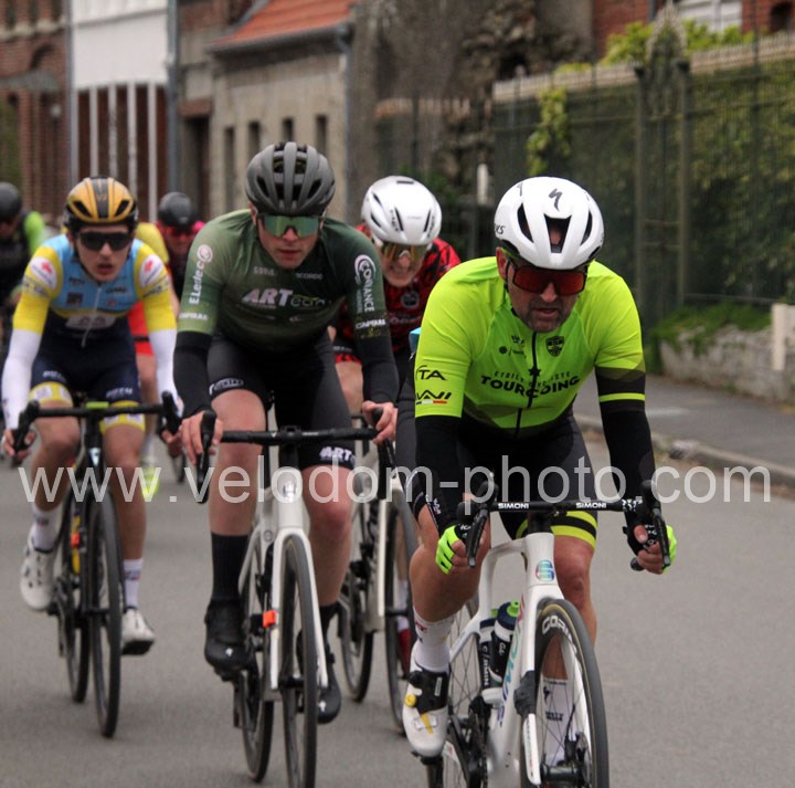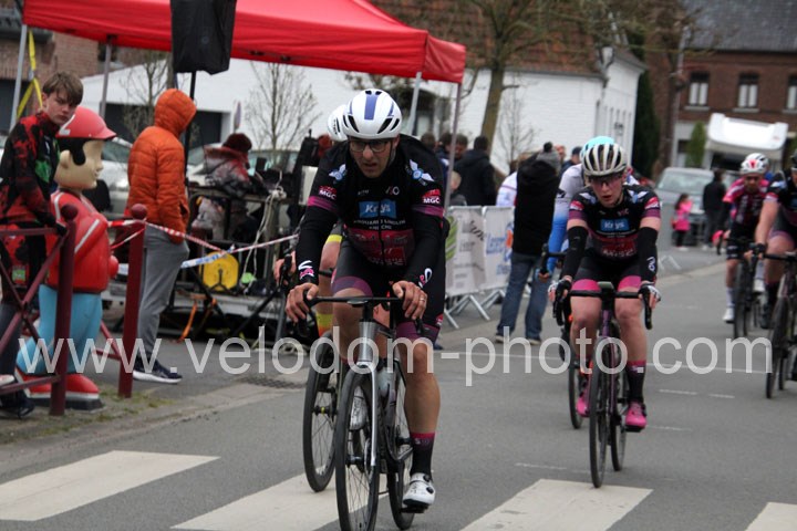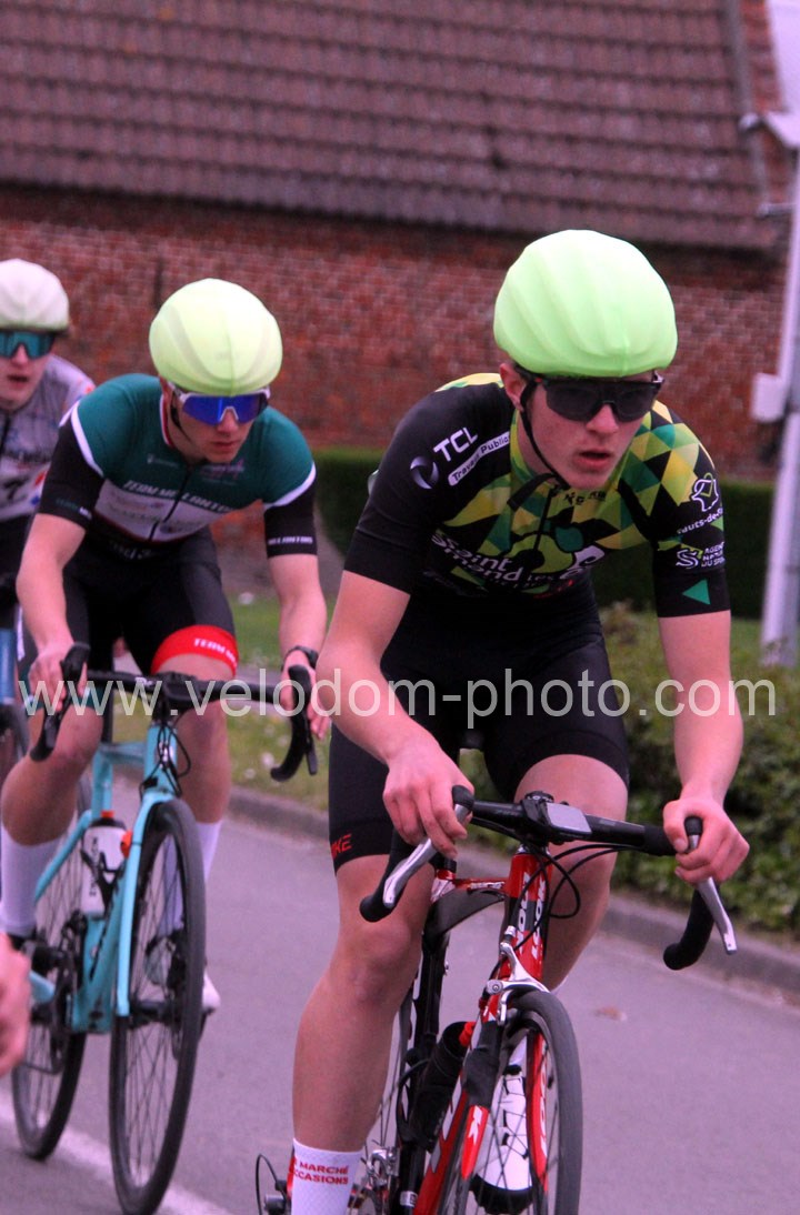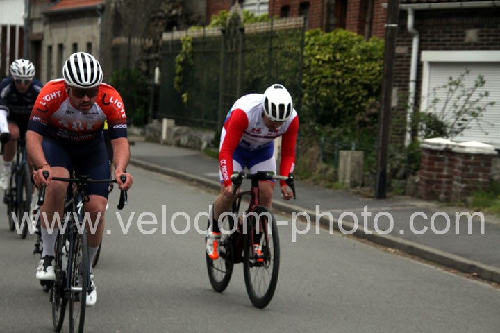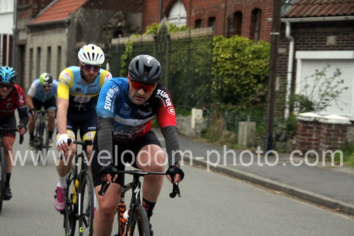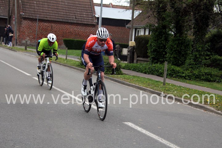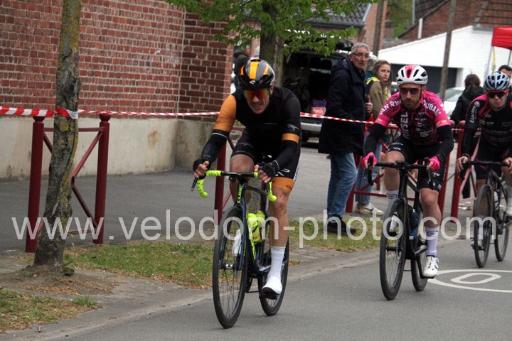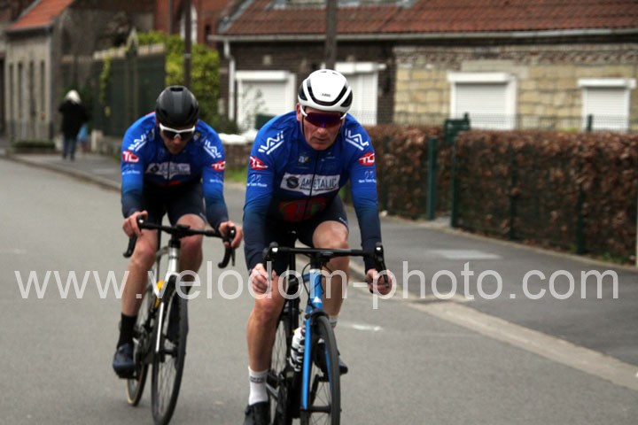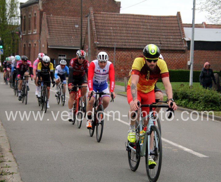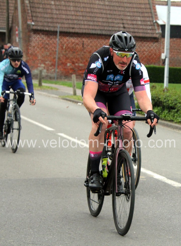 Si devant ça semblait bien s’engager pour le leader, derrière la poursuite se mettait en place avec 5 hommes en contre avec notamment Jean Michel Mordacq ( ESEG Douai ), Sébastien Jablonski ( New Team Maulde ) et Vincent Gaillez ( Team Full Watts ) et Kévin Moreau ( EC Bellaing Wallers ).