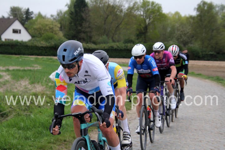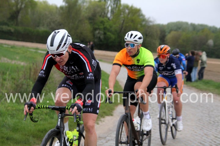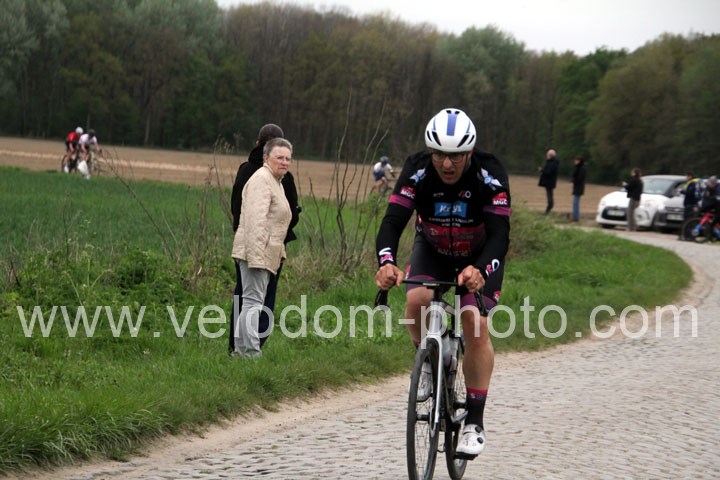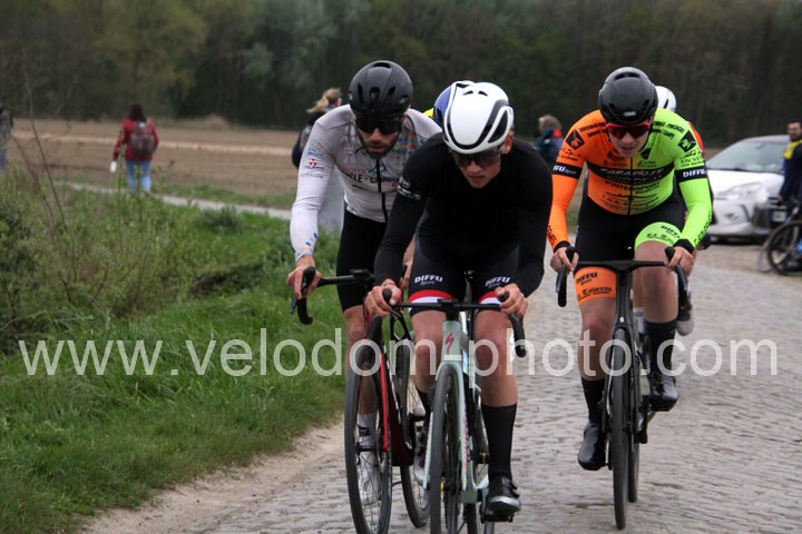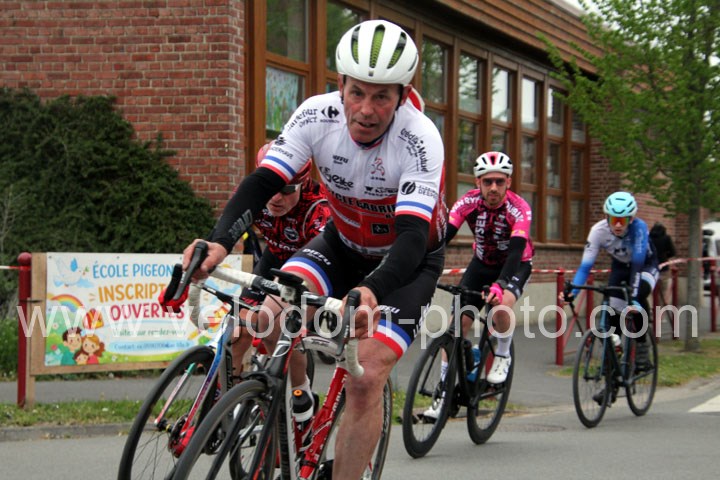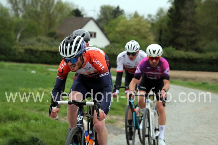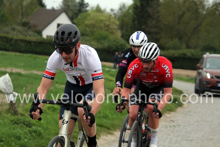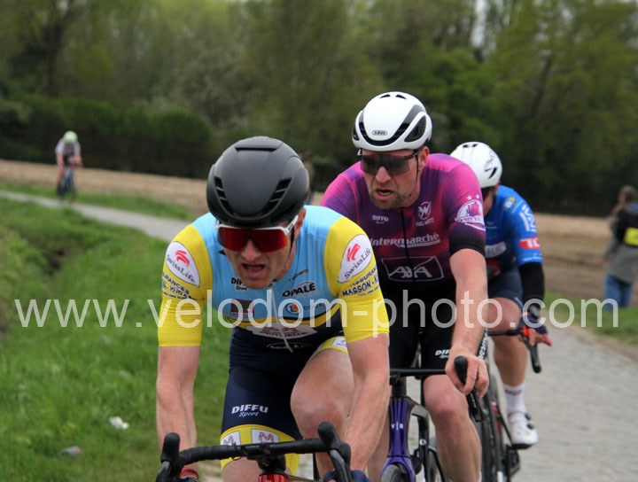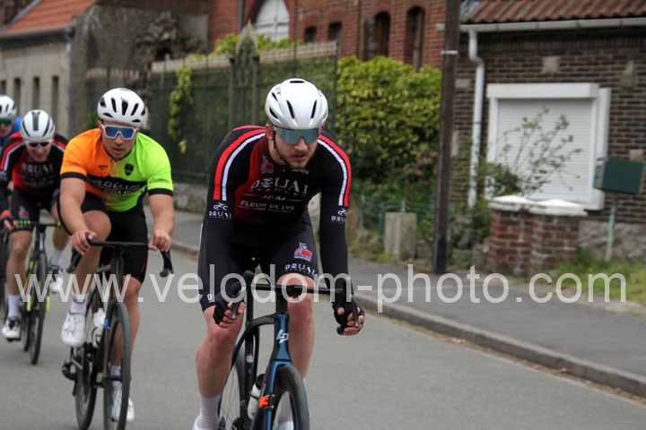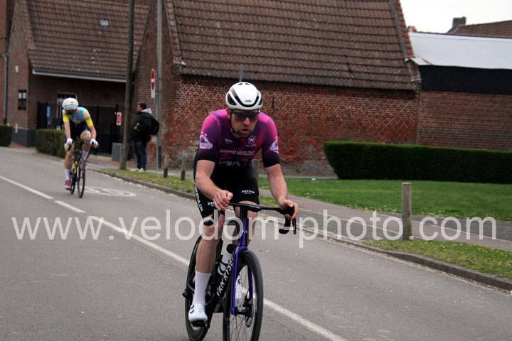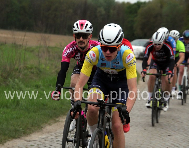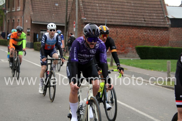 Si devant ça semblait bien s’engager pour le leader, derrière la poursuite se mettait en place avec 5 hommes en contre avec notamment Jean Michel Mordacq ( ESEG Douai ), Sébastien Jablonski ( New Team Maulde ) et Vincent Gaillez ( Team Full Watts ) et Kévin Moreau ( EC Bellaing Wallers ).