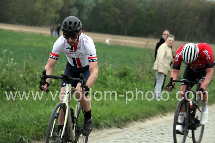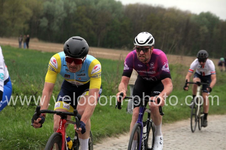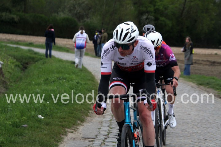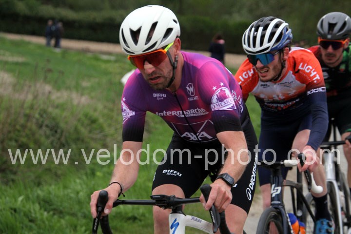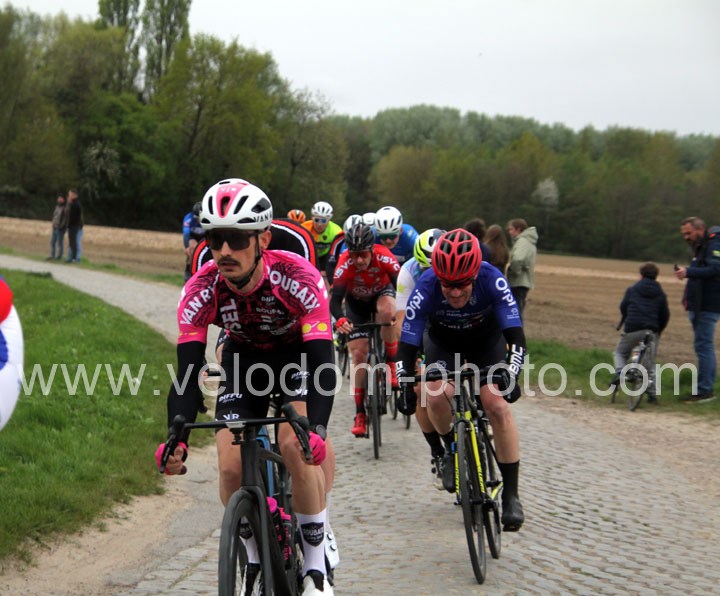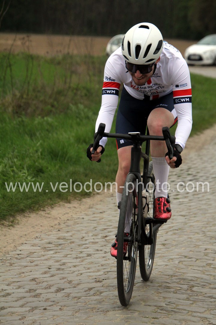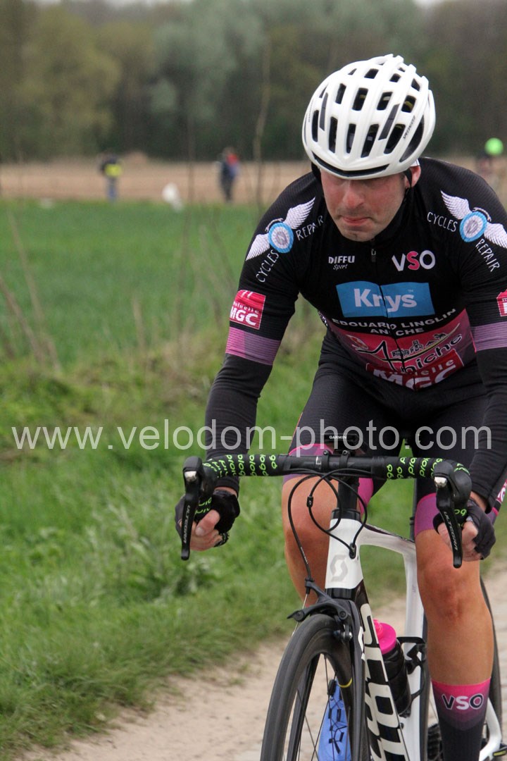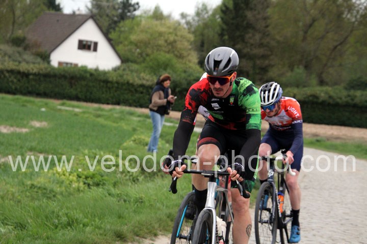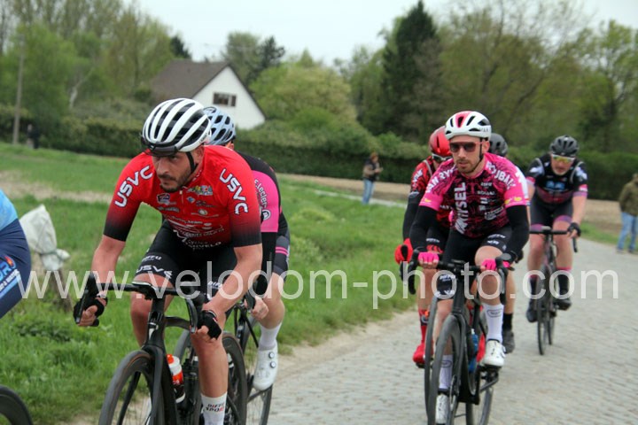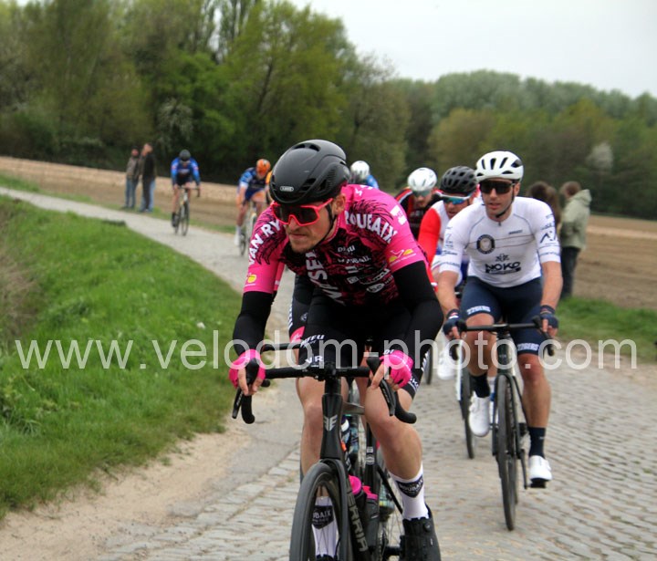 Si devant ça semblait bien s’engager pour le leader, derrière la poursuite se mettait en place avec 5 hommes en contre avec notamment Jean Michel Mordacq ( ESEG Douai ), Sébastien Jablonski ( New Team Maulde ) et Vincent Gaillez ( Team Full Watts ) et Kévin Moreau ( EC Bellaing Wallers ).