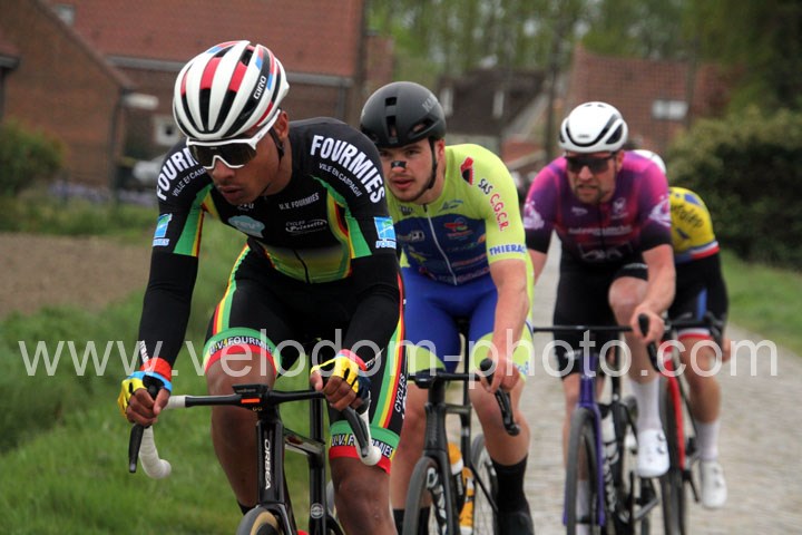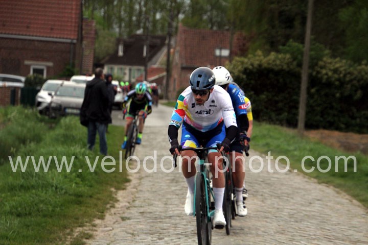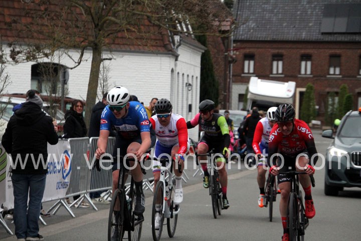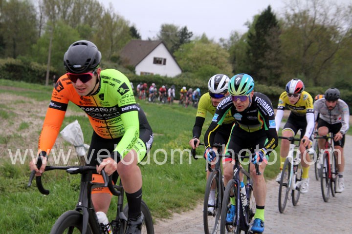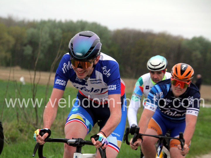 Par la suite, un petit groupe va se dégager à l’avant avec notamment Cyril et Elias Bugnicourt ( UV Fourmies ) et Timothé Laleu ( US St André ). Derrière on avait une belle réaction de Kévin Moreaux ( Bellaing Wallers )