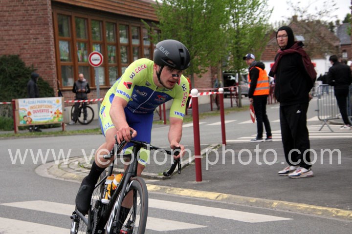 C’est donc au sprint que se décidera la victoire avec le beau final d’Axel Gochon ( Team Melantois ) qui remportera la victoire devant Alexandre Housez ( Team Police ) et Noé Flahaut ( Team Cycliste La Bordure ).