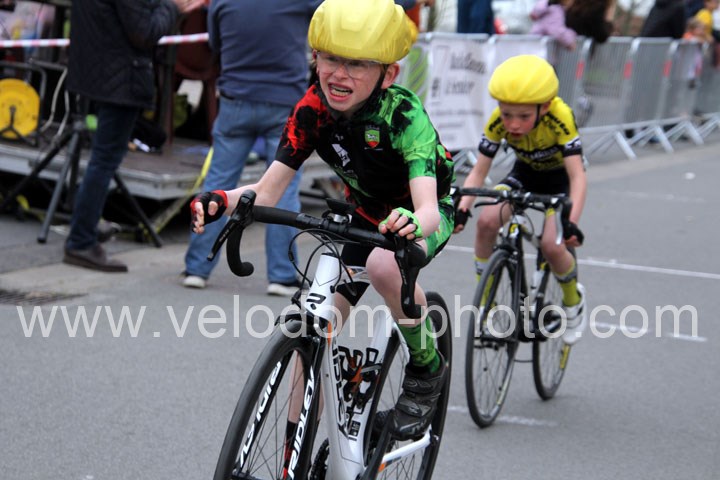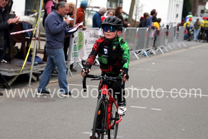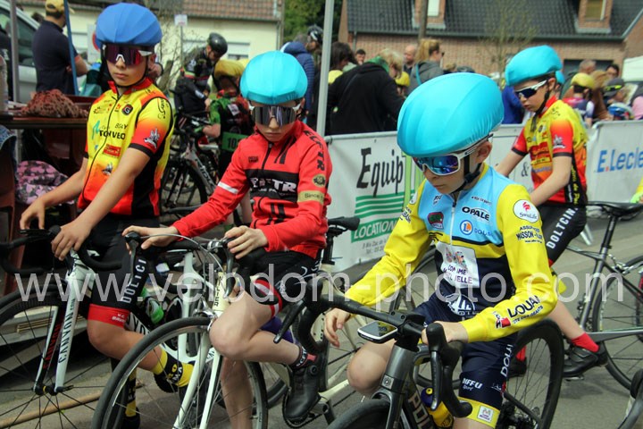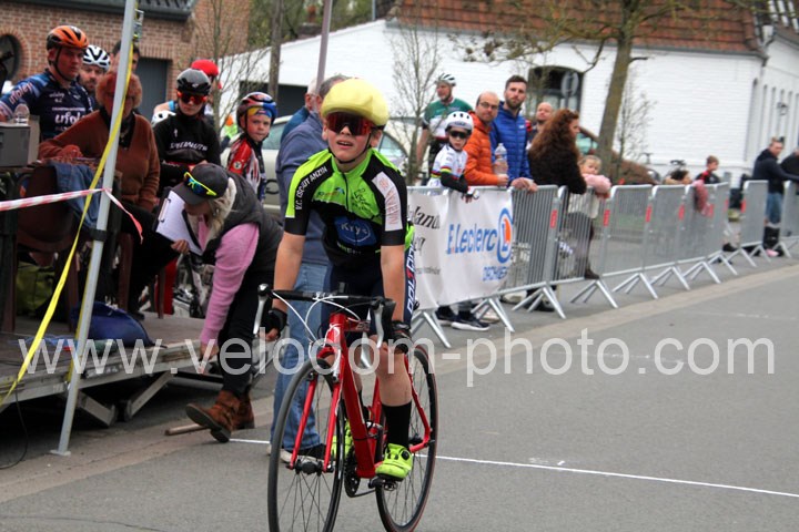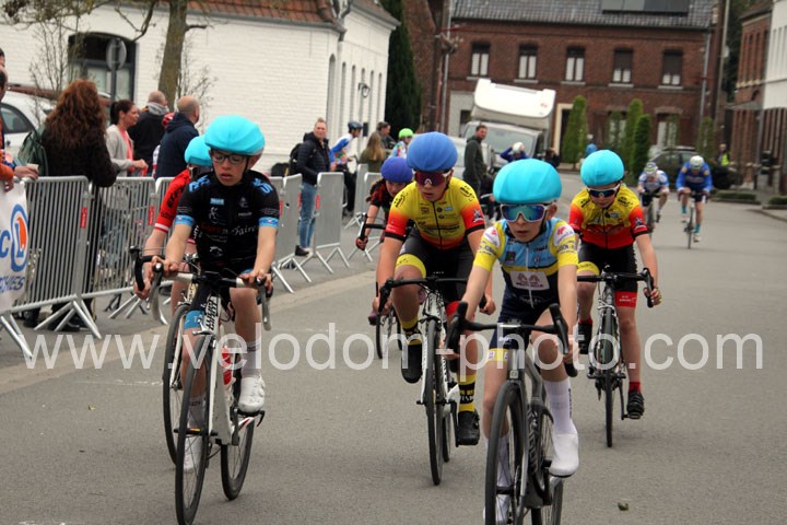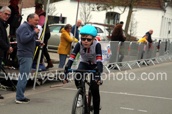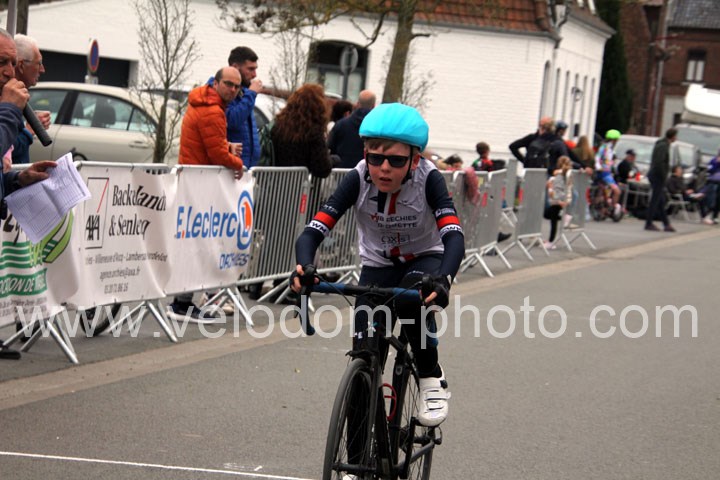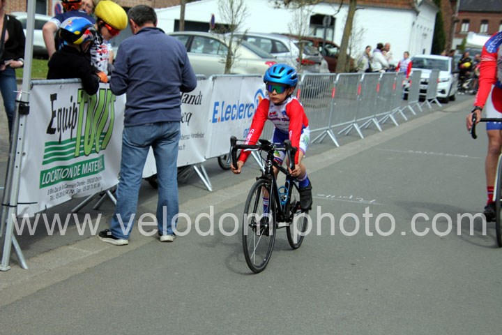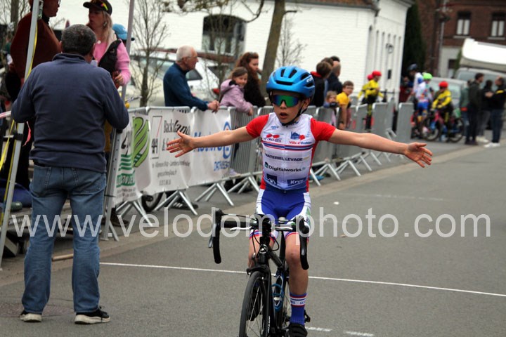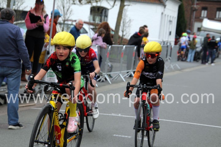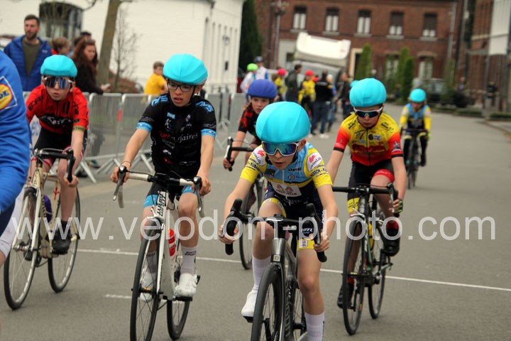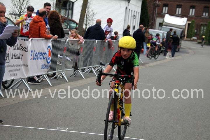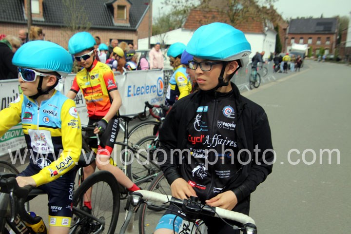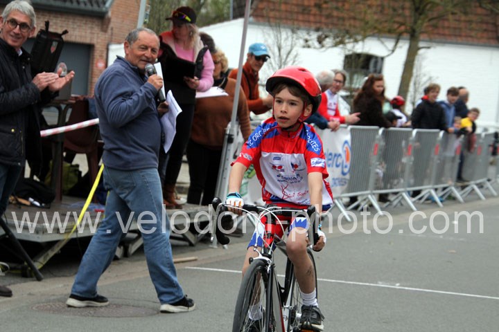 Pour débuter cette belle après midi de vélo à Bouvignies et sur le petit circuit de 2 Km 900 sans le secteur pavé. Ce sont les poussins qui prirent part aux festivités du jour sur un tour de circuit. Après une belle lutte au sommet, c’est Martin Scott ( CC Orchies ) qui terminera en beauté en venant s’imposer en solitaire devant Timothé Hebert ( New Team Orange ) et Paul Duvinage ( EC Héninoise )