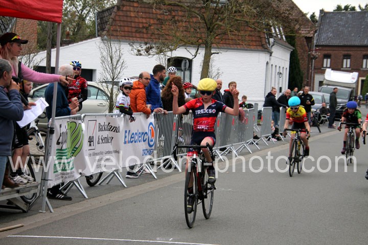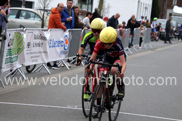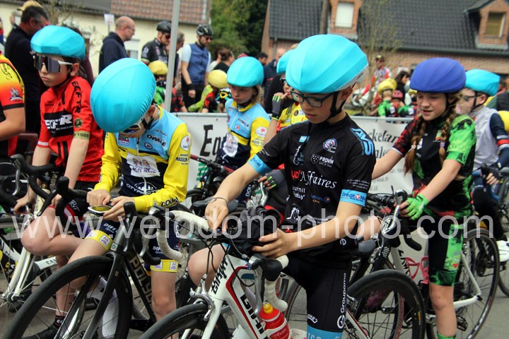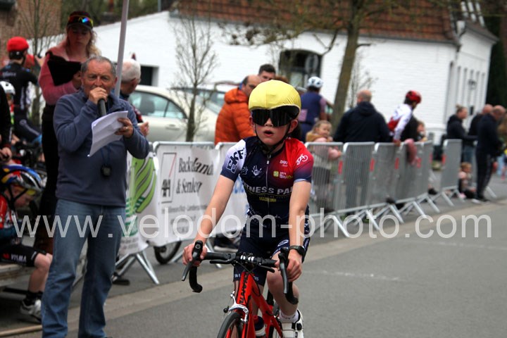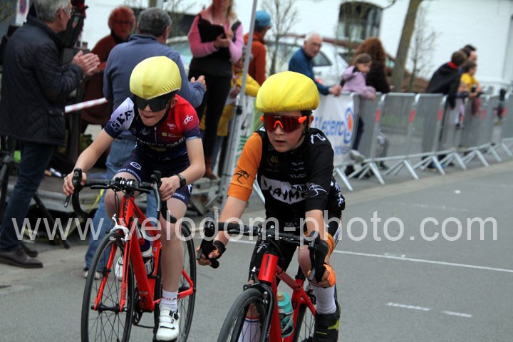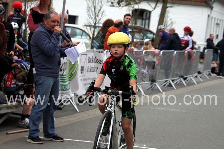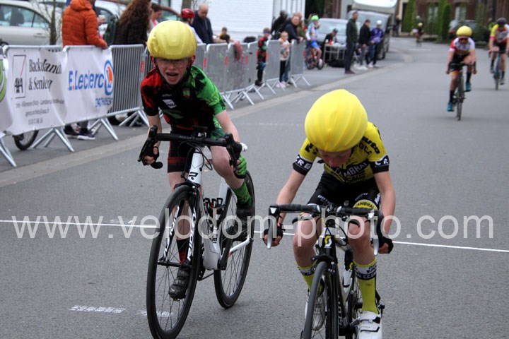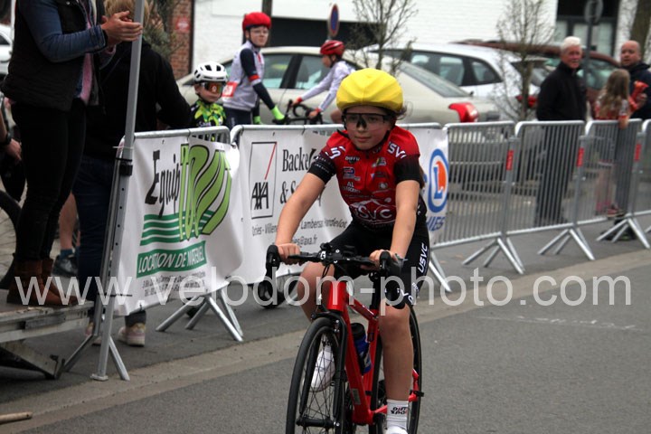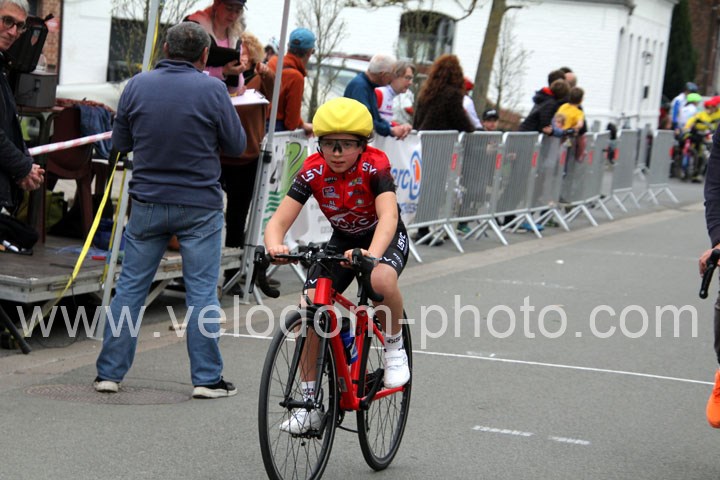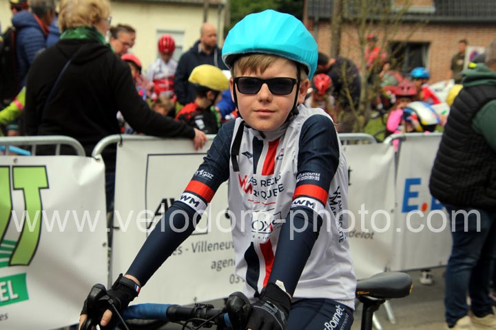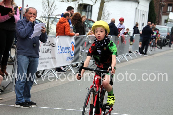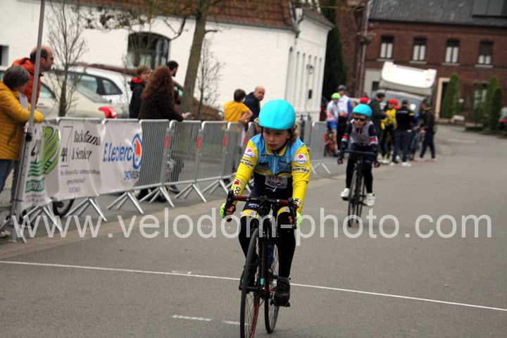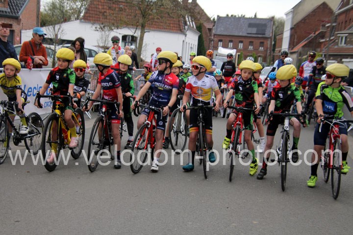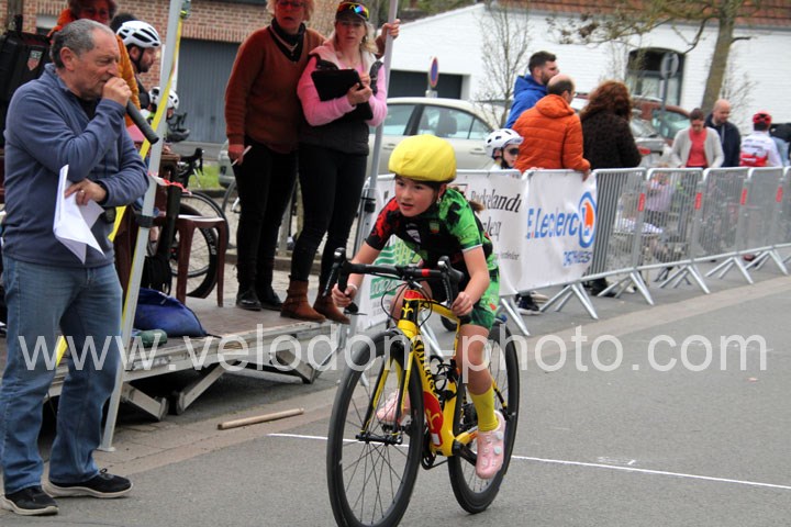 Pour débuter cette belle après midi de vélo à Bouvignies et sur le petit circuit de 2 Km 900 sans le secteur pavé. Ce sont les poussins qui prirent part aux festivités du jour sur un tour de circuit. Après une belle lutte au sommet, c’est Martin Scott ( CC Orchies ) qui terminera en beauté en venant s’imposer en solitaire devant Timothé Hebert ( New Team Orange ) et Paul Duvinage ( EC Héninoise )