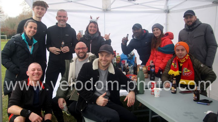 A l’arrivée, comme on dit, après l’effort, le réconfort avec un bon ravitaillement : chocolat chaud, vin chaud, gateaux, etc…