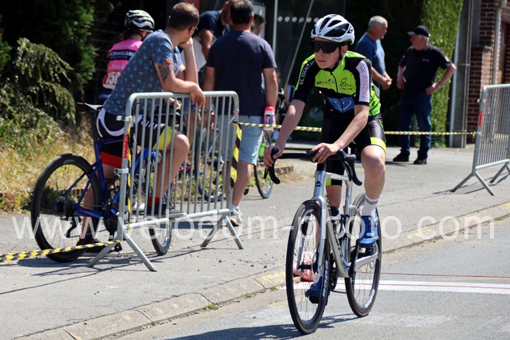 Dans la catégorie cadet, ils seront quatre à se jouer la victoire. Très vite on entrera dans le vif du sujet avec une belle offensive en solitaire d’Alexis Finet ( New Team Maulde ) qui va le placer seul aux commandes de la course. Une action qui va lui permettre de faire la jonction avec le peloton des 4èmes catégories. Une position qu’il ne quittera plus jusque l’arrivée