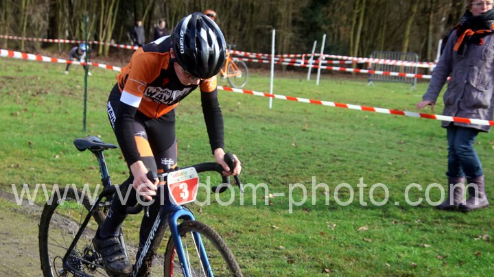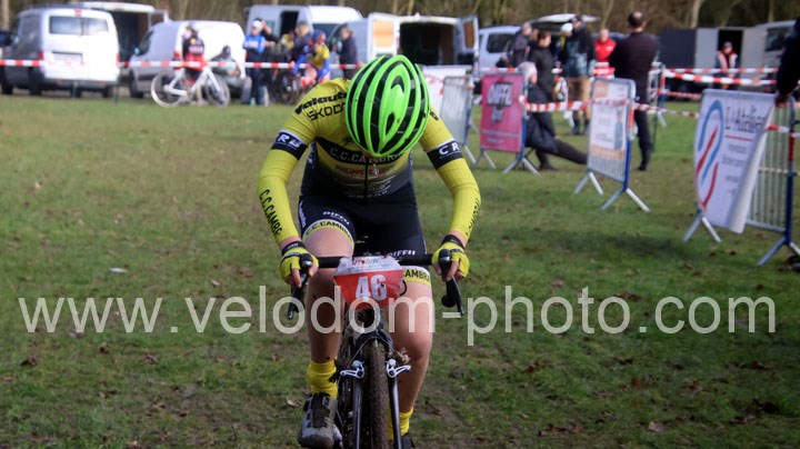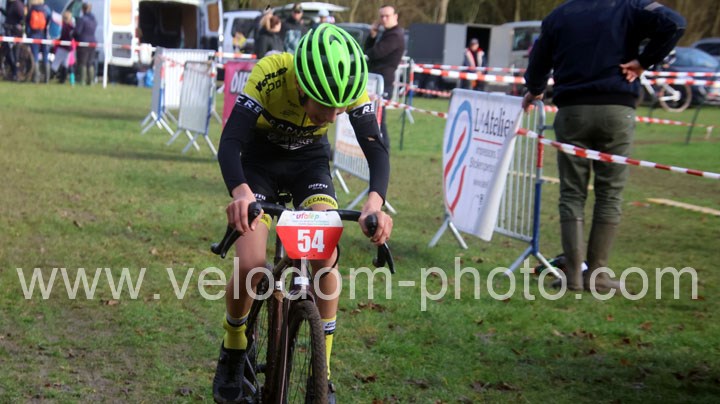 Après cette belle explication des minimes, place à l’épreuve phare du jour avec l’entrée en lice des séniors 1 2 3 cat, Féminines et cadets et qui verra une belle bagarre entre Eddy Lefevre et Anaick Van Wissen tous deux de l’UV Fourmies. Un incident mécanique dans le final d’Eddy Lefevre verra le sacre d’Anaick Van Wissen
