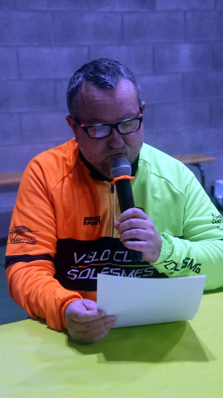 Y.Favier : « Je tiens à remercier Antoine ainsi que l’ensemble des membres du bureau pour leur travail et leur implication tout au long de l’année. Un grand merci également à la mairie de Solesmes pour son soutien constant, qui nous permet de faire vivre notre passion. L’année 2025 s’achève sur un bilan très positif, marqué par de nombreuses activités et de beaux moments de convivialité