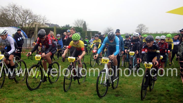 Beau plateau chez les Minimes pour la conquete du graal à Haspres. Tout d’abord le fourmisien Mateo Cailleau auteur d’un très beau début de saison avec déjà quelques victoires à la clef mais aussi Ilan Flahaut sans oublier Charles Canipel ( CC Cambrésien )