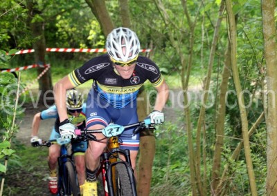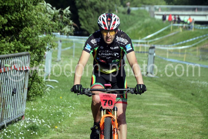 Depuis le début de saison, on avait l’habitude de voir dans cette catégorie la domination de Didier Durand ( Bully les Mines ). Ce sera encore le cas. En effet, dés le début de course, c’est lui qui prenait les choses en main. Une position qu’il ne quittera plus jusque l’aboutissement de cette course. A l’arrière, c’est Alain Brixhe ( VTT Pontois ) qui lancera la poursuite devant Eric Wach ( Beuvry ). Au fil des tours, Didier Durand sera intraitable et ira cueillir une belle victoire et le titre avec plus de 9 minutes d’avance sur les autres concurrents à l’arrivée.