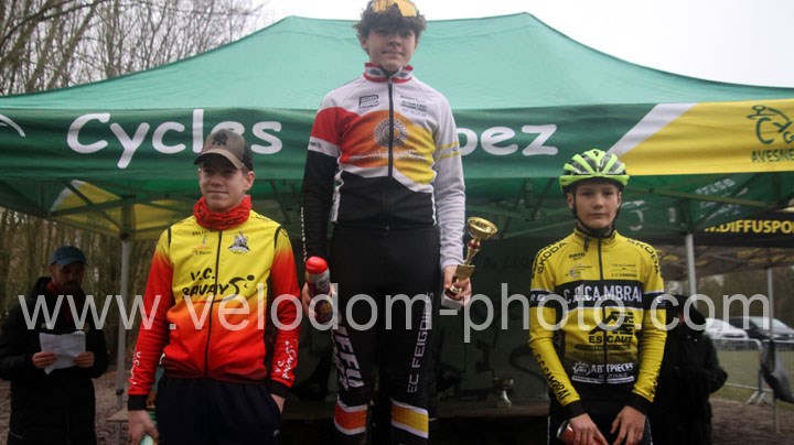 Ils seront trois à se disputer la victoire chez les Minimes Garçons. D’entrée c’est Antonin Pluvinage ( Cambrai ) qui va prendre la direction des opérations devant Camille Mazurek ( Bergues ) et Luca Blanchet ( Bavay ). Au fil des tours, le leader sera impérial et va creuser un bel écart qui va lui permettre d’aller chercher la victoire devant Mazurek et Blanchet