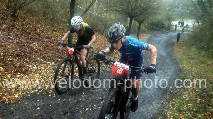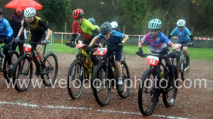 Ils seront 6 à se disputer la victoire chez les Cadets VTT avec d’entrée un coureur qui va hausser le ton en la personne de Théo Lecerf ( Team Pink and Blue ) qui va occuper seul les commandes de la course devant Théo Dozinel ( Team Pink and Blue ).