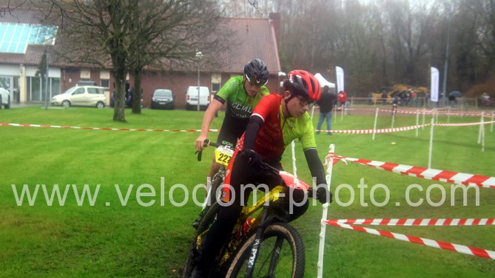 Chez les cadets cyclo cross, deux coureurs au départ pour 30 Min d’efforts. Très vite, la course va prendre sa tournure décisive avec une belle accélération de Mathis Paniez ( CCIM ) qui va prendre l’ascendant dès les 1ers hectomètres de course devant Meddy Duval ( Campagne les Wardrecques )