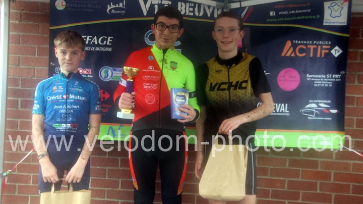 Au fil des minutes, Théo Lecerf va accentuer son avantage devant son coéquipier Théo Dozinel et loin devant Timéo Lagache ( St Pol sur Ternoise velo club )