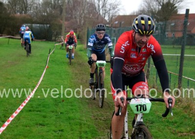 A l’arrière, on vit les belles réaction de Jérome Grévin ( VC Solesmes ) et Stéphane Wins ( Team Bousies ) et un peu plus loin Clément Magnies ( CC Orchies ).
