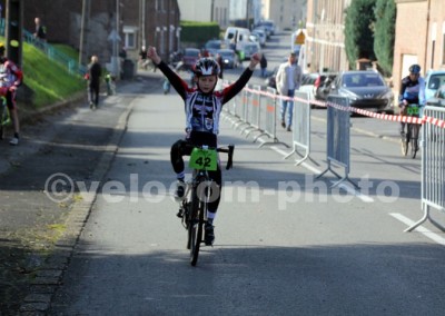 Une semaine après le beau rendez-vous de Pont sur Sambre, le VTT Pontois était une nouvelle fois à pied d’œuvre pour l’organisation du cyclo cross VTT de Rocq Requignies. Au final, un beau succès de plus de 110 participants qui se sont délectés du circuit très technique tracé en sous-bois et en pâturage et qui a permis du grand spectacle. Une belle après-midi de sport cela sous une météo très clémente. Comme de coutume, ce sont les écoles de cyclime qui ont ouvert le bal avec de bien belles prestations pour chacune des catégories avec la belle victoire de Eloise Hianne chez les poussins, Robin Laleu chez les pupilles et enfin Dorian Mourain chez les benjamins.