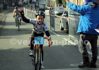 Ils furent deux à se disputer la victoire chez les poussins : Mathéo Rivard ( Pont Sur Sambre ) le local du jour et Eloise Hianne ( PO ). Très vite c’est Eloise Hianne qui fera la différence même si derrière le jeune Mathéo Rivart fera preuve d’une grande détermination. A l’arrivée et avec brio, Eloise Hianne l’emportait devant Mathéo Rivart.