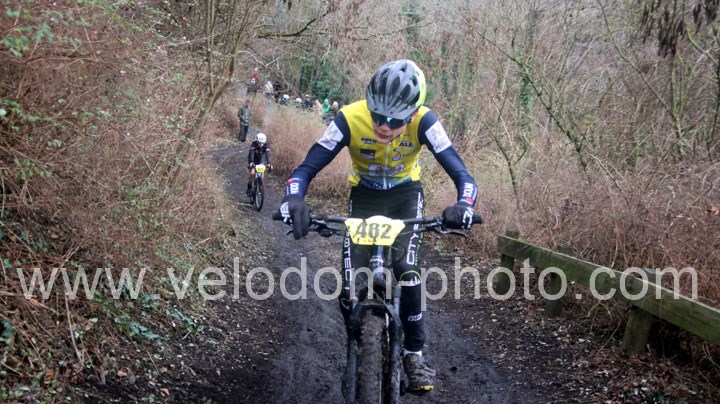 Derrière, le trou était fait avec un peu plus loin Mathéo Rivart ( VTT Pontois ).