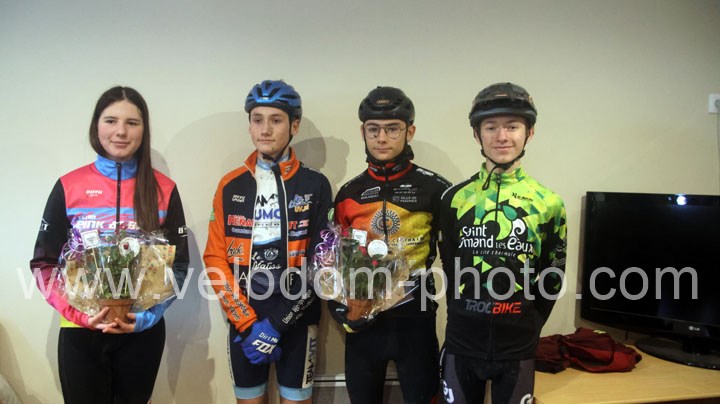 Après une magnifique épreuve des écoles de cyclisme, ce sont les Minimes et cadets qui ont engagés les hostilités du jour sur le grand circuit du jour alliant technique et puissance. Chez les minimes, superbe prestation de Clément Quilliot ( EC Héninoise ) qui est allé chercher la victoire avec la manière tandis que Lony Alexandre ( EC Feignies ) s’imposait en VTT Cadet et Timotei Mouchart ( EC Feignies ) en cyclo cross Cadet