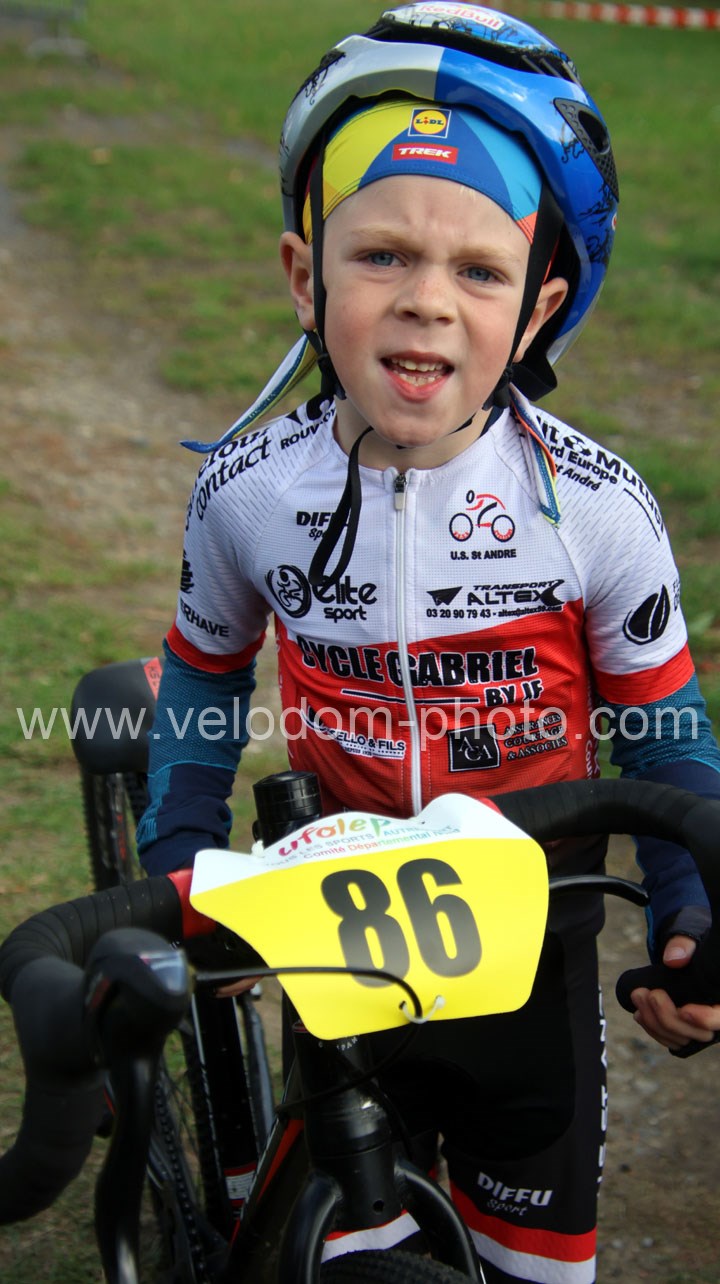 Ils furent 8 à se disputer la victoire chez les poussins. Au menu 2 tours de 650 m à effectuer. Dés le 1er tour, c’est Martin Scott ( CC Orchies ) qui va donner le ton en prenant seul les commandes de la course devant Mathéo Delforge ( US St André ) et Sasha Bral ( EC Lieu St Amand ). C’est dans cet ordre que l’on retrouvera les coureurs à l’arrivée avec le beau succès de Martin Scott, au grand bonheur de la famille Cardon et sa maman venu l’encourager sur le bord de la route.