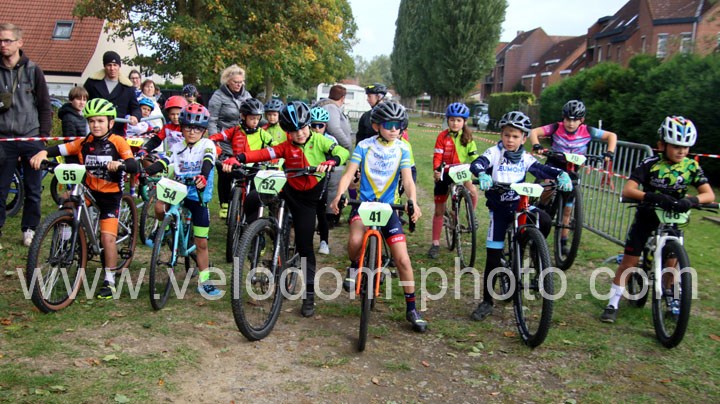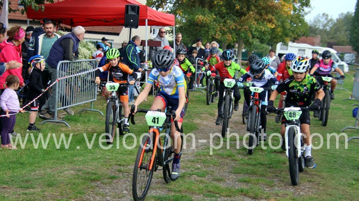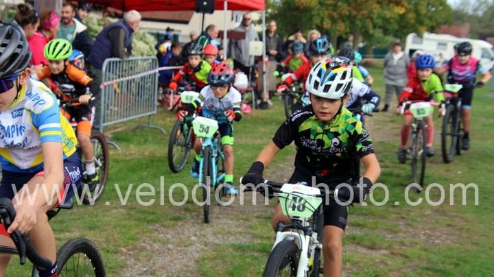 Ils seront 13 au départ chez les Pupilles. Avec une belle bagarre au sommet entre les différents concurrents. Dés le 1er tour c’est Timéo Rouly ( CSC Ferrière ) qui avait annoncé devant Jao Bluge ( Team VTT Jeumont ) et Rafael Ledain ( VTT St Amand ).