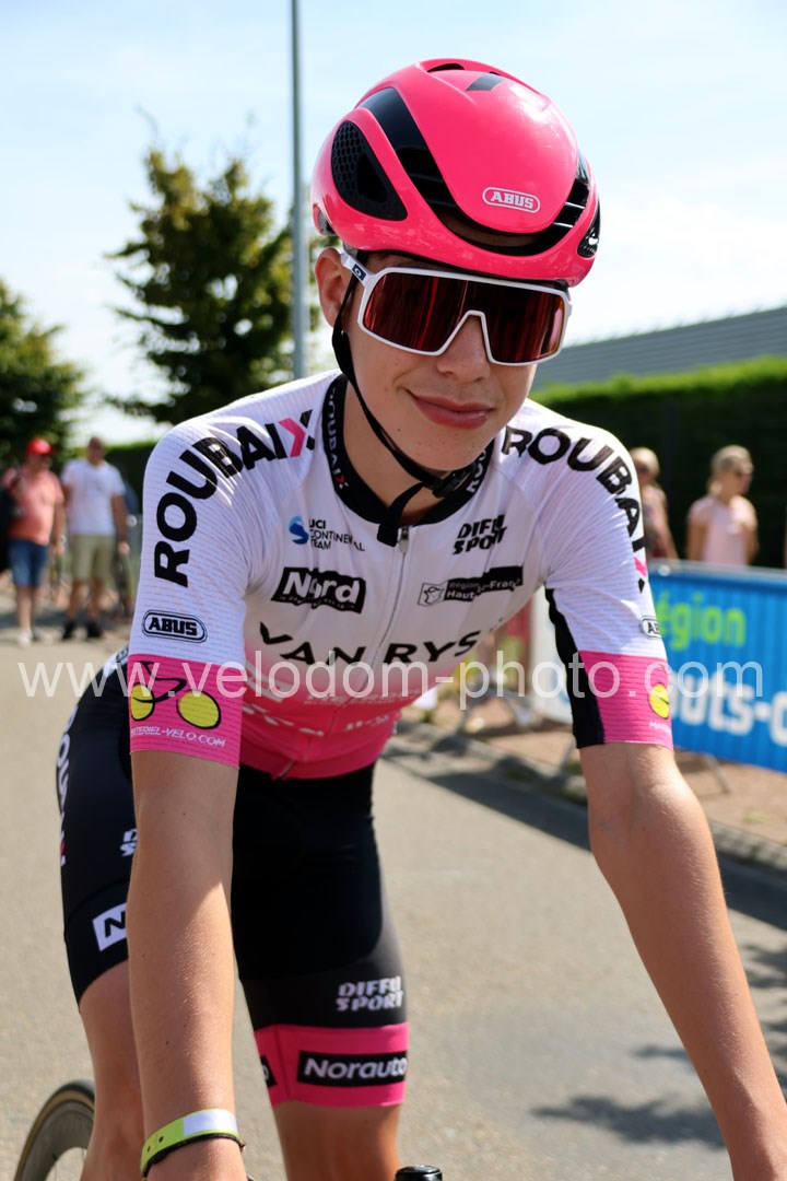 En effet, c’est groupé que les coureurs se présentaient sur la ligne d’arrivée et en puissance Timothé Joyez ( VC St Omer ) prenait le meilleur sur Jules Lefebvre Fournier ( VC Roubaix ) et Louis Baude ( VC Roubaix ).