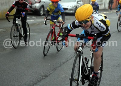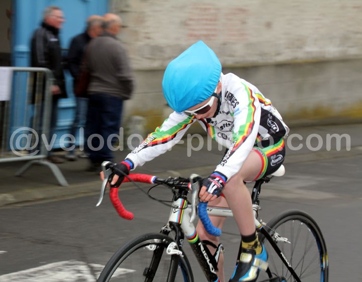 C’est sur deux tours de circuit que s’est dessinées la victoire chez les Poussins. Dans le 1er tour, on retrouvait un Joachim Bulka ( USVM ) très en verve et prêt en découdre pour la victoire. Malheureusement une chute un peu plus tard lui fera perdre toute ses désillusions. Finalement, c’est le dernier tour qui devait être décisif avec la belle victoire de Timotei Mouchart ( Ferrières ) devant Florian Damien ( VC Solesmes ) et Clément Bienfait ( Ferrières ).
