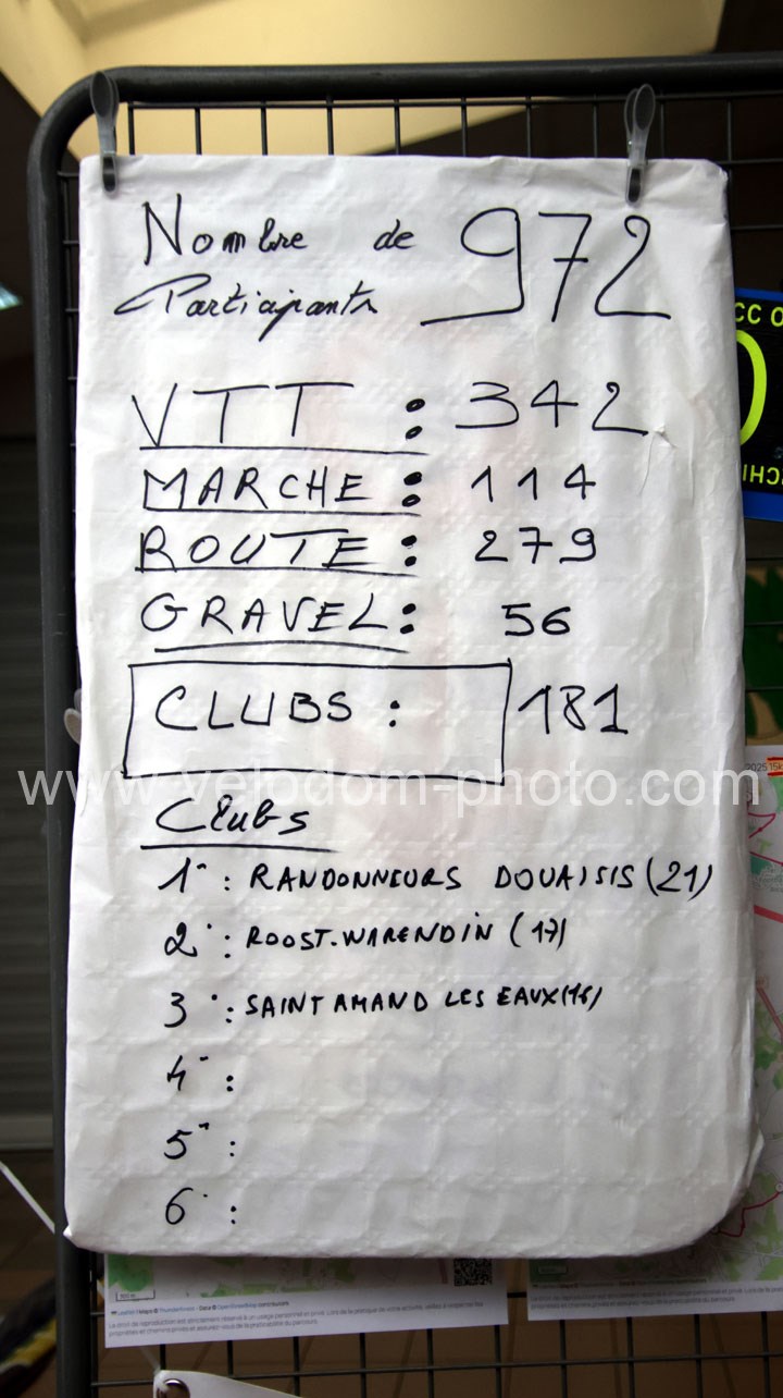 En ce qui concerne la participation c’est le club des Randonneurs du Douaisis qui a fait le plein avec 21 participants devant Roost Warendin 17 inscrits et Saint Amand les Eaux 16 participants