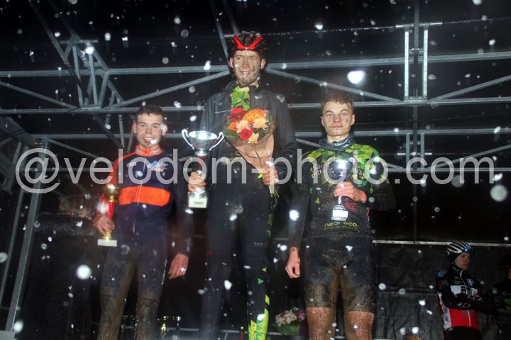 Ce sont 4 coureurs qui s’engageront dans cette dernière épreuve de la journée. Très vite, on entrait dans le vif du jet avec un bon départ d’Edouard Tambour ( 3CTeam ) qui va caracoler en tête. Derrière, la poursuite viendra de Nicola Brosse ( VTT St Amand ) et Aurélien Frison ( Etroeungt ). Au fil des tours, Tambour va creuser l’écart et parviendra à aller chercher la victoire devant Brosse et Frison.