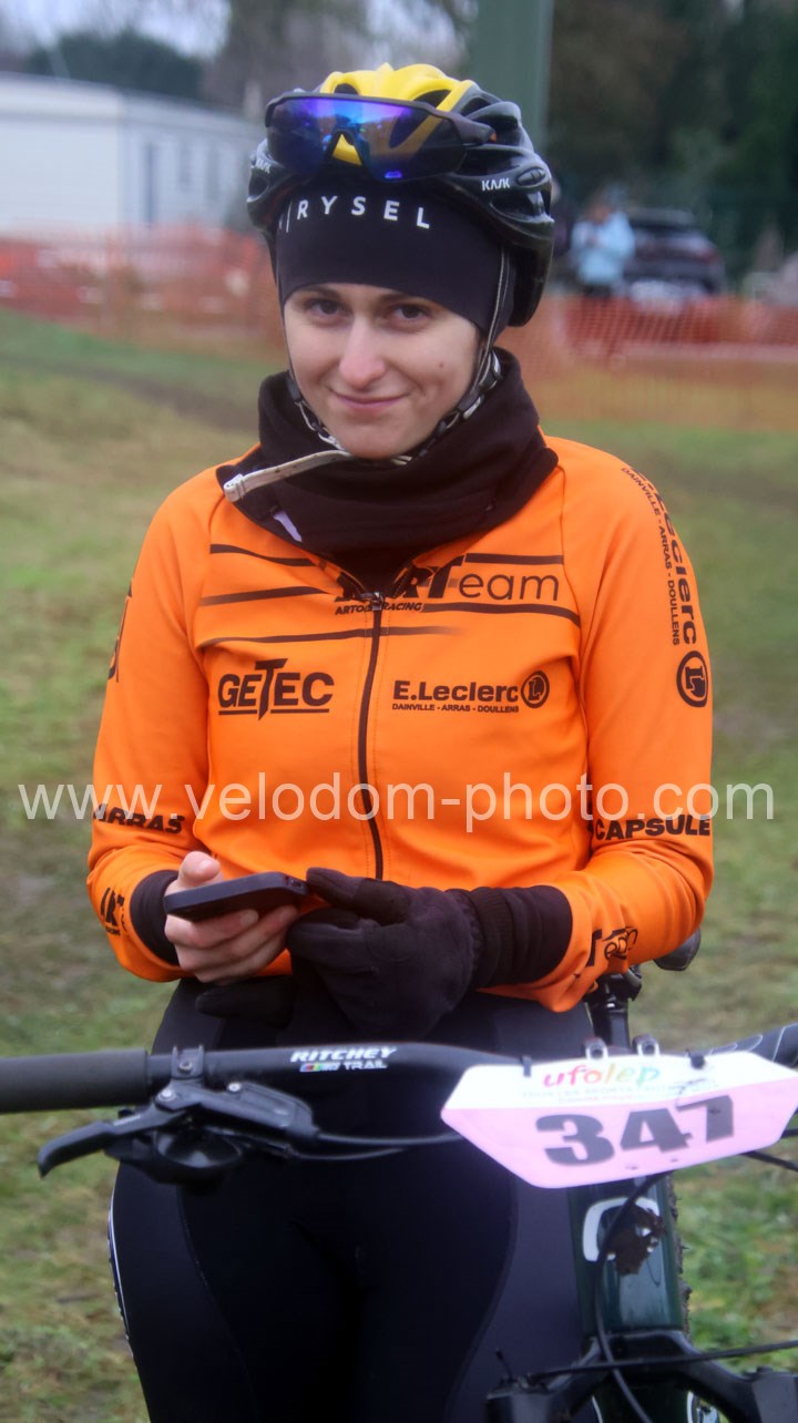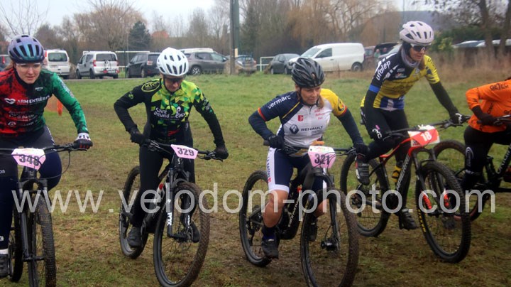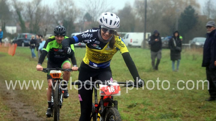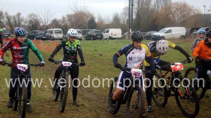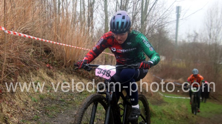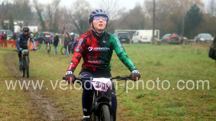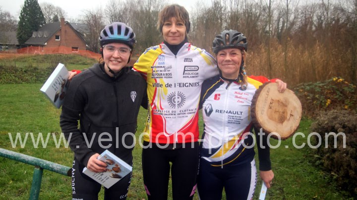 Dans la catégorie des féminines la course va très évolué avec une belle offensive de Maggy Alexandre ( EC Feignies ) qui va l’a placer seule en tête de la course. Au fil des tours, elle va accentuer son avantage devant Louane Chieux ( CC Armentierois ) et Caroline Salet ( La Bassée ).