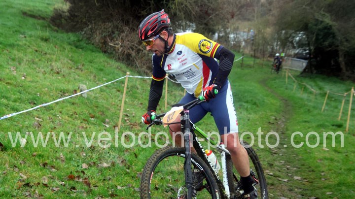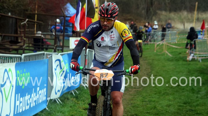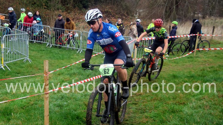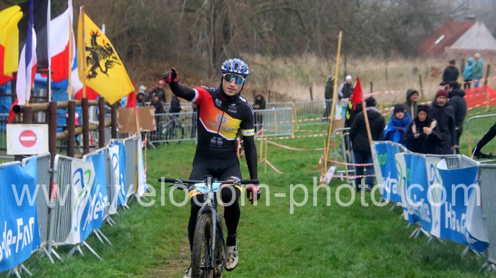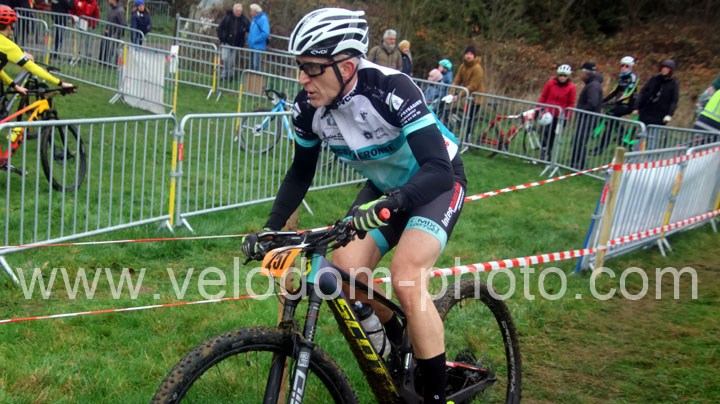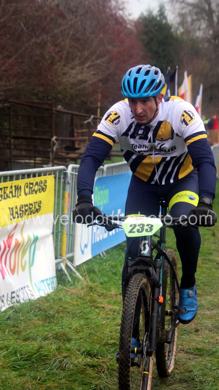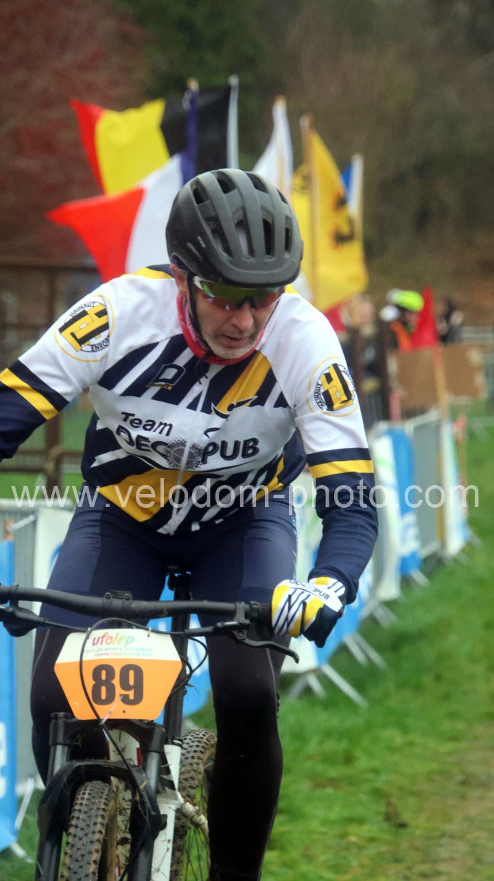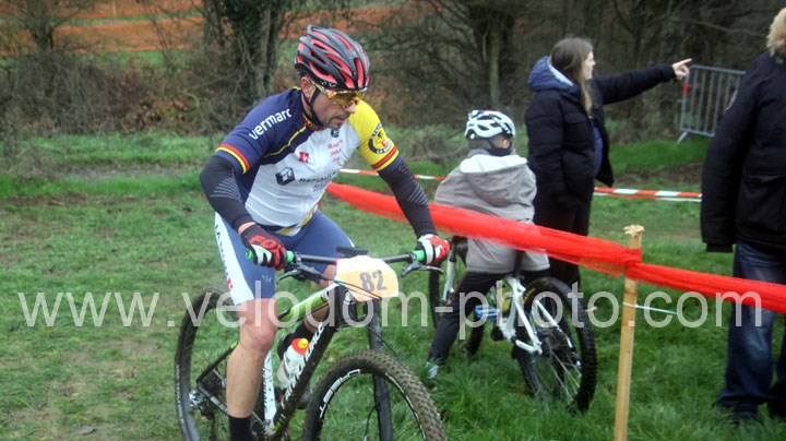 Du côté des vétérans, du beau monde au départ avec notamment Gregory Alexandre ( EC Feignies ) et Sébastien Jablonski ( New Team Maulde ). Dés le départ, c’est Gregory Alexandre qui va prendre l’ascendant en tête de course. Une position qu’il ne devait plus quitter même si derrière on avait une belle résistance de Sébastien Jablonski. Au fil des tours, le leader va accentuer son avantage et allait chercher une belle victoire devant Sébastien Jablonski et Julien Vreck ( VTT Pont sur Sambre ).
