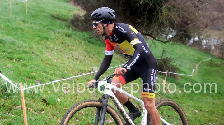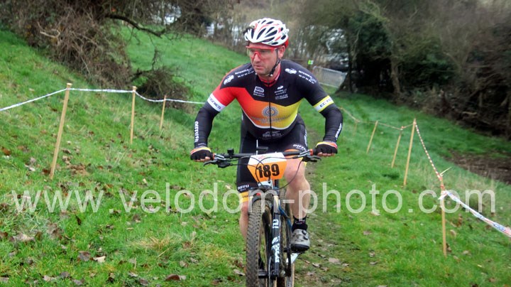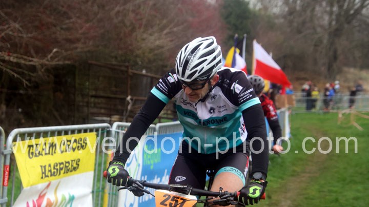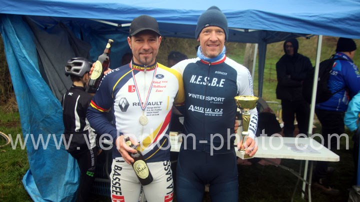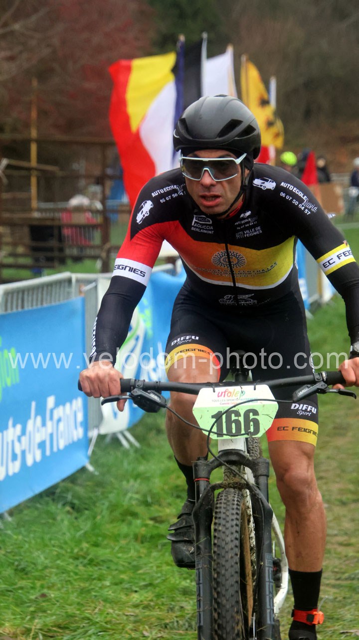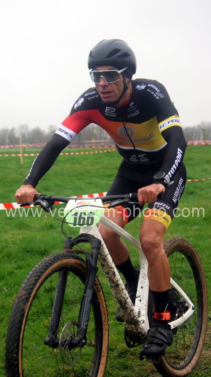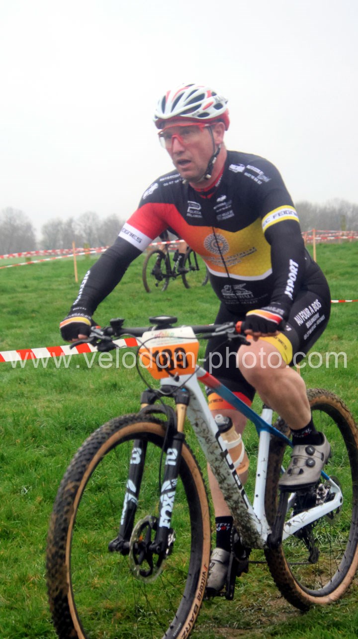 Du côté des vétérans, du beau monde au départ avec notamment Gregory Alexandre ( EC Feignies ) et Sébastien Jablonski ( New Team Maulde ). Dés le départ, c’est Gregory Alexandre qui va prendre l’ascendant en tête de course. Une position qu’il ne devait plus quitter même si derrière on avait une belle résistance de Sébastien Jablonski. Au fil des tours, le leader va accentuer son avantage et allait chercher une belle victoire devant Sébastien Jablonski et Julien Vreck ( VTT Pont sur Sambre ).