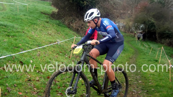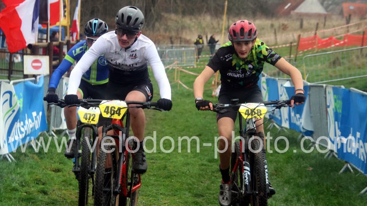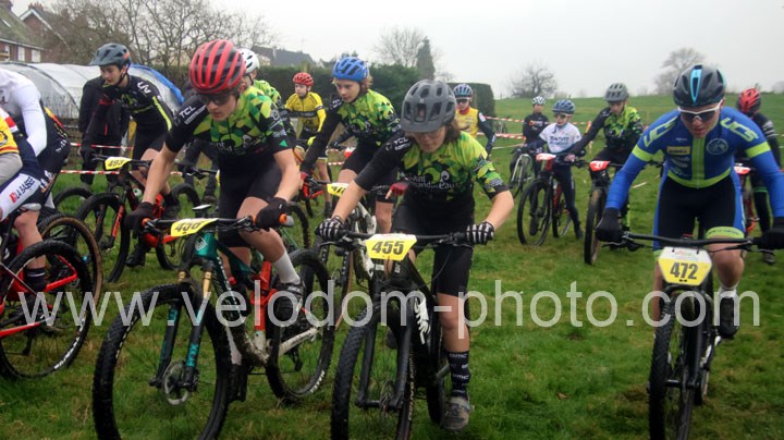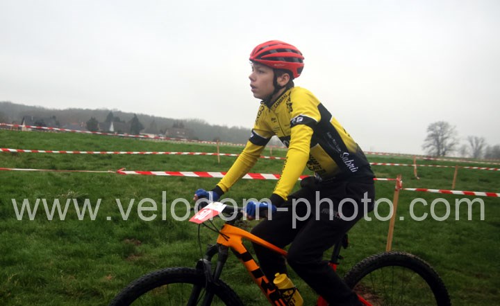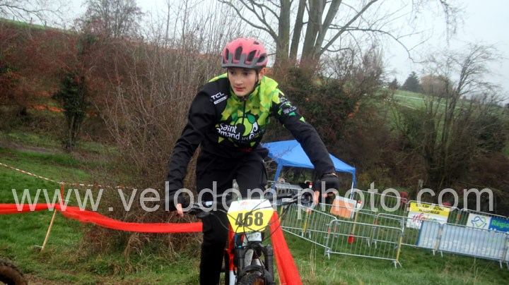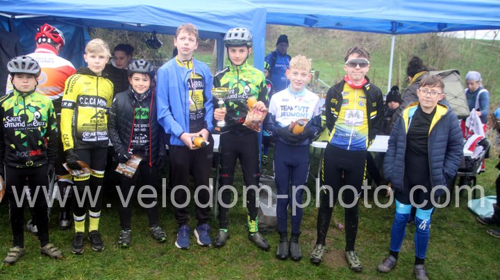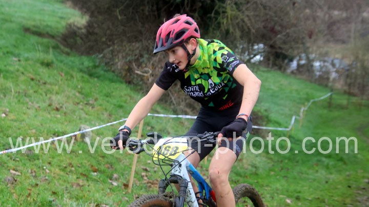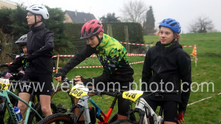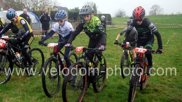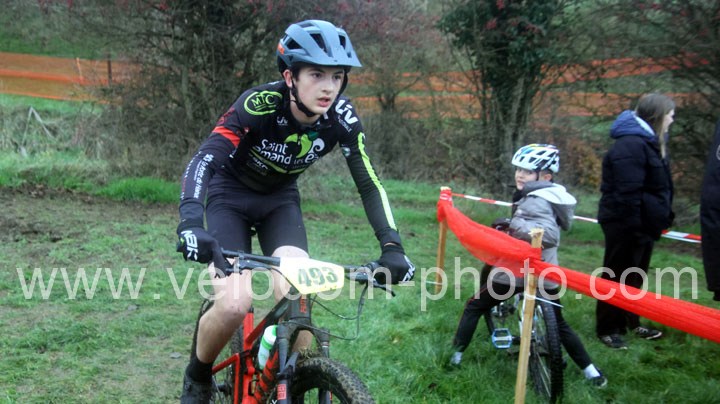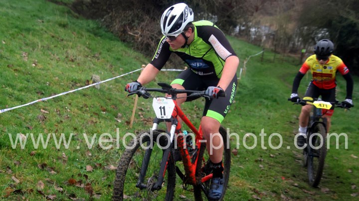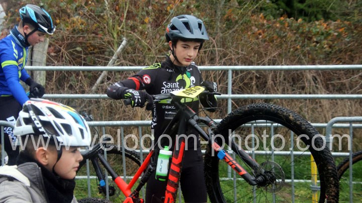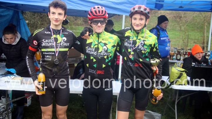 12 coureurs cadets au départ. Une course qui verra une nette domination des coureurs du VTT St Amand. En effet dés le départ, c’est Arthur Logeot ( VTT St Amand ) qui va prendre l’ascendant devant Tiphaine Tronchon ( VTT St Amand ) et Charles Cat ( VTT St Amand ). Des positions qui ne devaient plus bougés jusque l’arrivée et c’est dans cet ordre que l’on retrouvait les coureurs à l’arrivée