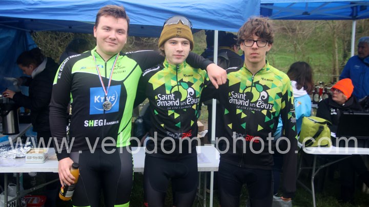 A l’arrivée et avec maitrise, Nolan Canivet remportera une belle victoire devant Alois Bossu et Jérémie Ledain. Un triplé VTT St Amand. Bravo à eux
