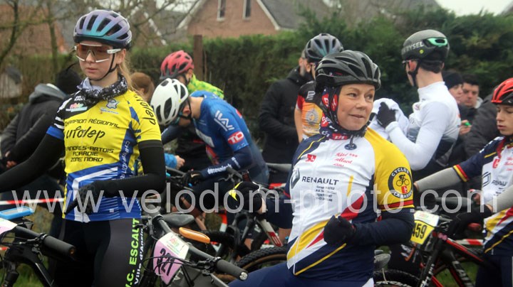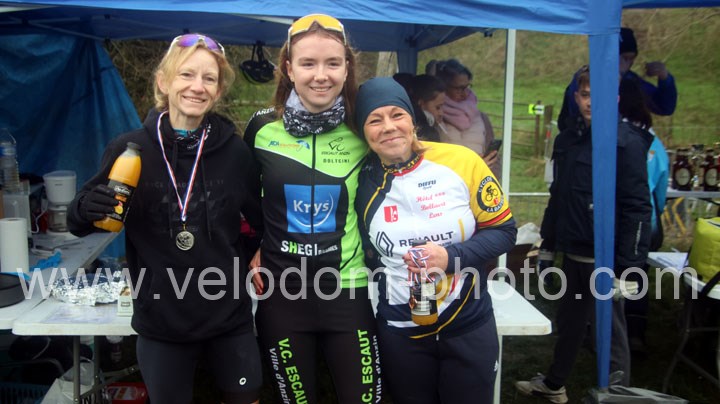 Chez les féminines, elles seront trois au départ mais d’entrée c’est Clémence Bossu ( VC Escaut Anzin ) qui va annoncer la couleur en prenant seule les commandes de la course. Derrière et en poursuite on retrouvait Christine Lefebvre ( VTT St Amand ) et Caroline Salet ( La Bassée ) mais déjà à quelques longueurs de la féminine de tête. Au fil des tours, Clémence va accentuer son avantage pour aller chercher la victoire devant Christine Lefebvre et Caroline Salet