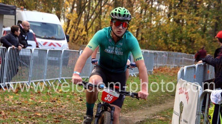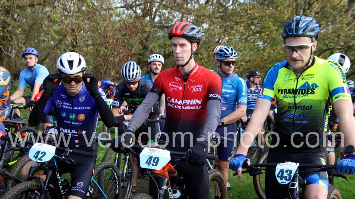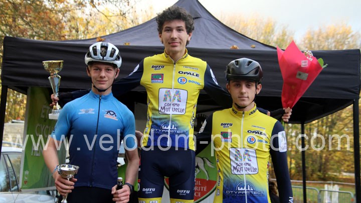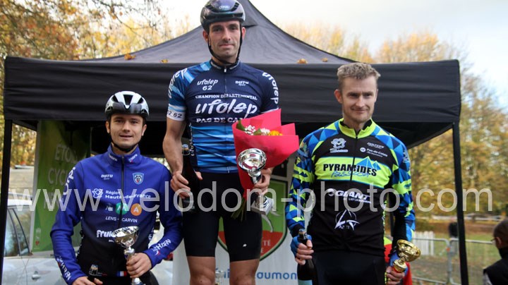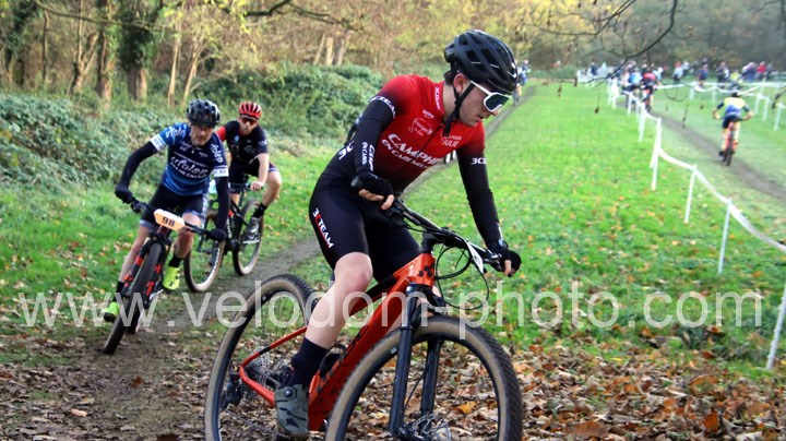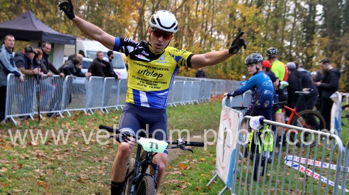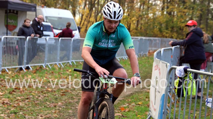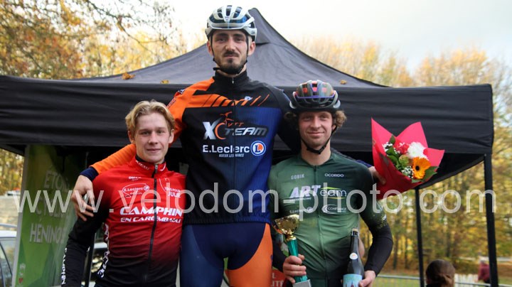 C’est dans cette catégorie que l’on retrouvera le vainqueur du classement scratch. En effet, dés le départ c’est Alexis Fremeaux ( Noeux les Mines XC Team ) qui va s’envoler à l’avant et va creuser l’écart au fil des tours et ce n’est pas Germain Samier ( Camphin en Carembault ) et Florian Merchez ( Artois Cycling Team ) qui viendront contrarier sa progression.
