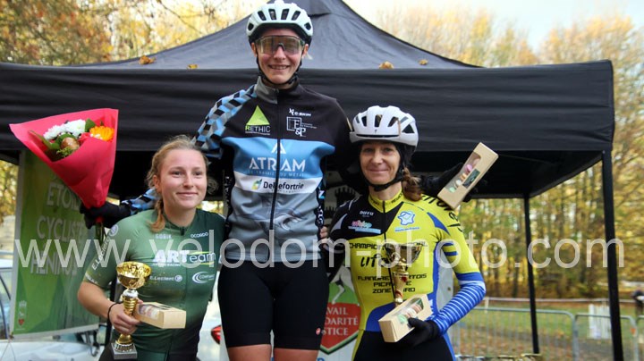 En grande favorite de cette course, Justine Attagnant ( Team Shark ) n’a pas failli à la tache en dominant de bout en bout cette course pour aller chercher une belle victoire devant Flore Caupain ( Artois cycling Team ) et Maggy Alexandre ( EC Feignies )