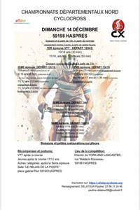 Un beau site pour du beau spectacle Après la belle réussite du cyclo cross VTT d’Haspres du 15 Novembre dernier, la commune d’Haspres sera de nouveau en effervescence lors des championnats régionaux de cyclo cross UFOLEP sur un un circuit remanié du côté du... lire plus