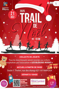 Un beau trail pour une belle cause Avant de fêter Noel comme il se doit, la Team All Mountain associé à la commune de Fampoux organise le Trail de Noel à l’Hermitage de Fampoux. Une belle matinée de sport où deux parcours de 10 et 15 Km pour le trail et marche... lire plus