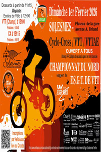Championnat du Nord VTT FSGT Encore du beau spectacle à Solesmes ce Dimanche Après des épreuves réservées à la fédération UFOLEP, le très beau site Les concurrents pourront se faire plaisir sur un parcours identique à celui de la veille et qui promet du... lire plus