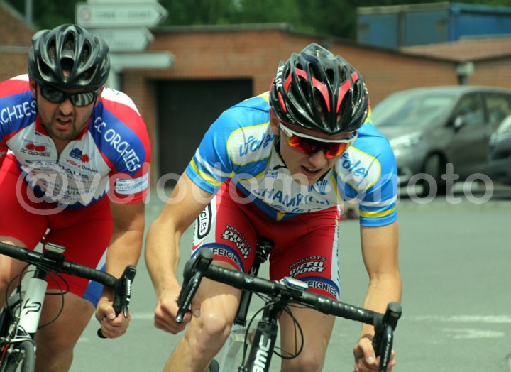 A l’annonce du dernier tour, Jean François Couillet tentera bien un coup de poker mais le groupe de poursuivant reviendra sur l’attaquant. C’est donc vers une explication entre les 8 coureurs de tête que se fera l’arrivée. En puissance, le solide Goeffrey Vanacker ( Team Bermerain ) viendra s’imposer devant Thomas Montaigne ( La Chérizienne ) et Laurent Castiglionetti ( CC Orchies ). A noter la 13ème place de Corentin Druart ( New Team Maulde ) et la 16ème pour Thomas Sizaire.