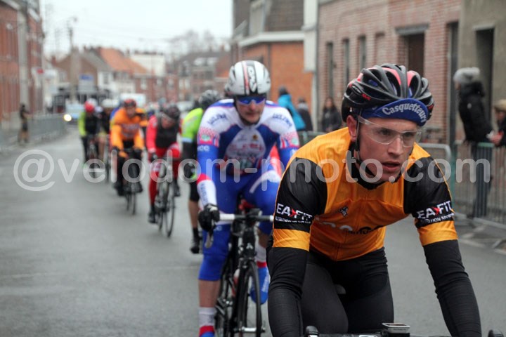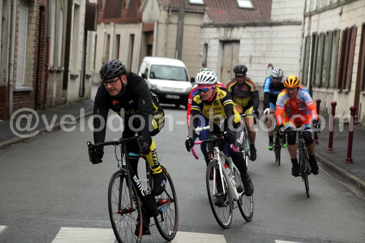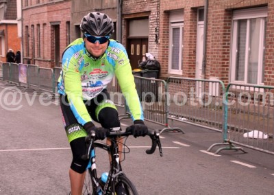 Une course haletante dans cette catégorie avec de multiples tentatives d’attaques et finalement un seul homme qui marquera cette épreuve : Joel Verbrugghe ( Bavay ). Après un 1er tour de marquage, c’est le 2ème tour qui marquera les 1er tentatives avec Céline Knockaert ( Verlinghem ) et Yves Sonneville ( CC Isbergues ). Mais derrière, on était bien décidé à réagir et un regroupement s’opérait à l’avant avec 6 hommes dont Christophe Szczurek ( Fenain ), Céline Knockaert ( Verlinghem ), Yves Sonneville ( CC Isbergues ), Joel Verbrugghe ( Bavay ) et Olivier Martinache ( CC Orchies ). La course redoublera d’intensité quelques minutes plus tard avec 4 hommes qui prendront le large a mi-course et feront une bien belle impression. Avec une Céline Knockaert très en jambe à l’amorce du final. Finalement à l’amorce des dernières minutes de course. Joel Verbrugghe poussera une belle accélération qui le propulsera à l’avant de la course. Une position qu’il ne devait plus quitter jusque l’arrivée. C’est en grand vainqueur qu’il franchissait la ligne d’arrivée en solitaire. Quelques secondes plus tard, c’est un peloton groupé qui se présentait sur la ligne. En costaud, Michel Gence ( BBL Hergnies ) coiffait sur la ligne Nicolas Zelek ( St André ). A noter la belle 7ème place de Willy Berthier ( CC Orchies ).