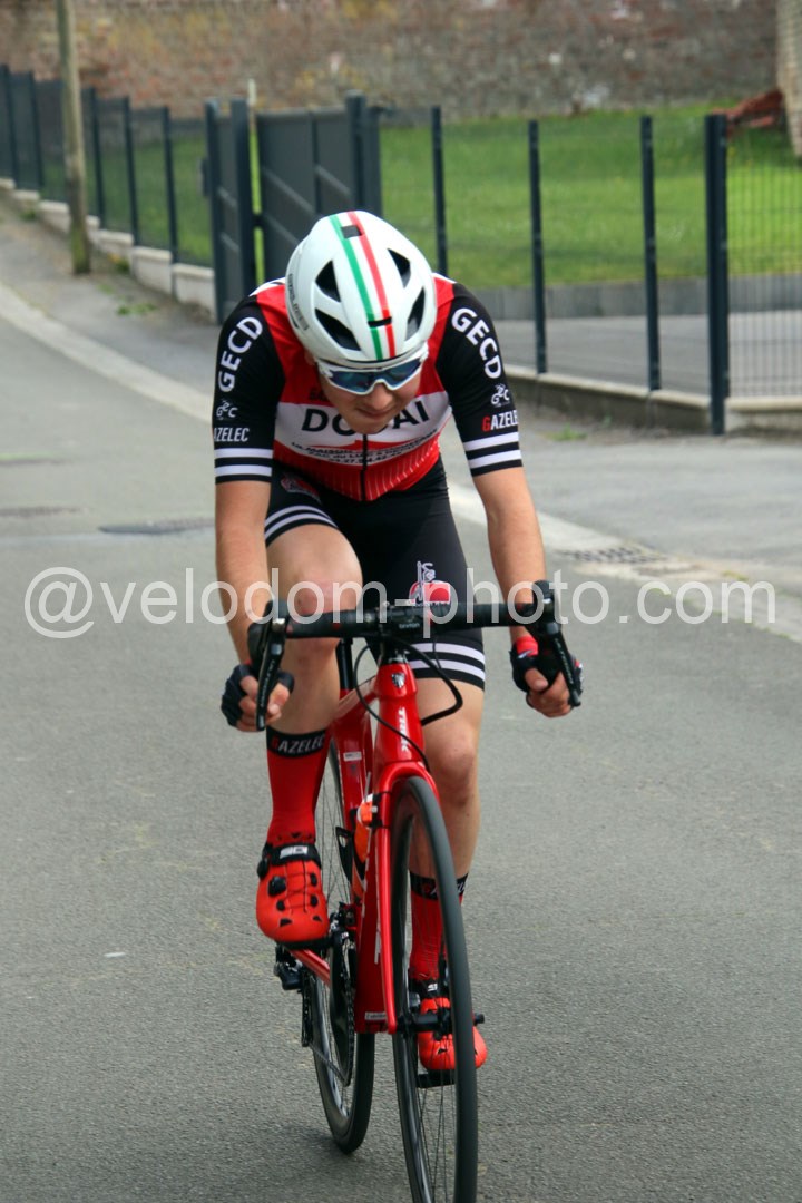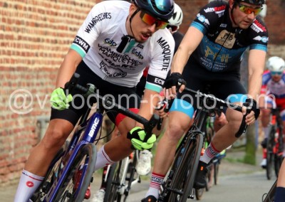 Dès le départ, l’allure imposante du peloton en disait beaucoup sur les velléités du peloton. En effet, les favoris étaient déjà aux avants postes dès les 1ers hectomètres de course avec des coureurs comme Sébastien Lefebvre ( UV Fourmies ) et Anaick Van Wissen ( UV Fourmies ) très en actifs en ce début de course.