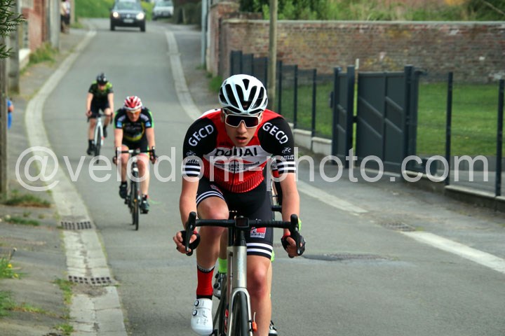 Un groupe avec Yohan Morelle ( Fontaine au Bois ) va alors prendre place dans une échappée. Derrière on verra la belle réaction de Joachim Semoulin ( Fontaine au Bois ). Malheureusement et une fois de plus le peloton aura raison des fuyards.