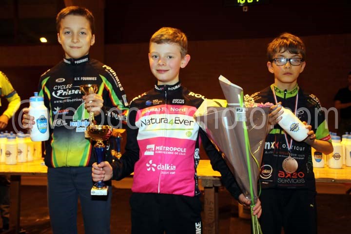 Pour boucler cette 1ère épreuve de la journée en beauté, ce sont les benjamins qui s’élancèrent dans la course. Une épreuve qui sera dominé par la talentueux Erwan Canu ( VC Roubaix ) qui dominera de bout en bout cette course. A l’arrière, on aura bien les réactions de Maxime Van Friel ( UV Fourmies ) et Jérémie Ledain ( VC de lEscaut ). Mais Erwan Canu sur son nuage viendra triompher de belle manière devant Maxime Vanfriel et Jérémie Ledain.