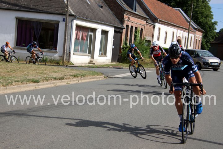 A 4 tours de l’arrivée, il ne seront plus que 5 aux commandes avec Kévin Blanpain ( VC Noeux ), Arnaud Masson ( ESEG Douai ), Christophe Thilloy ( Amiens Métropole Cyclisme ) et Jean François Thilloy ( Amiens Métropole Cyclisme ). Dylan Delplanque ( VSO ) qui avait beaucoup donné depuis l’ouverture des hostilités devait céder et se retrouver en 5ème position devant le jeune Justin Lefebvre ( Gazelec Douai ).