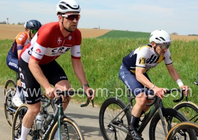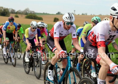 A 2 tours, le peloton va réagir très vivement et ne sera plus qu’à 25 secondes des leaders. A l’arrière le peloton était emmené par les solesmois.
