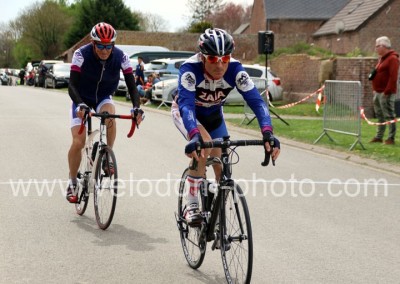 Mais à l’arrivée, c’est entre trois coureurs que se jouera la victoire et au terme d’un beau sprint où Antonin Bibaut ( Chavignon ) viendra prendre le meilleur sur Clément Drumez ( ESEG Douai ) et Corentin Avisse ( VC Solesmes ).