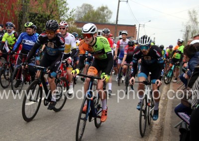La meute des coureurs lâchés. Très vite la course va prendre son élan avec déjà quelques cassures à l’avant et les costauds déjà bien présent à l’avant tel que Stéphane Wins ( Team Bousies ).